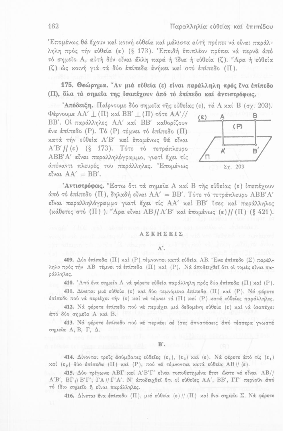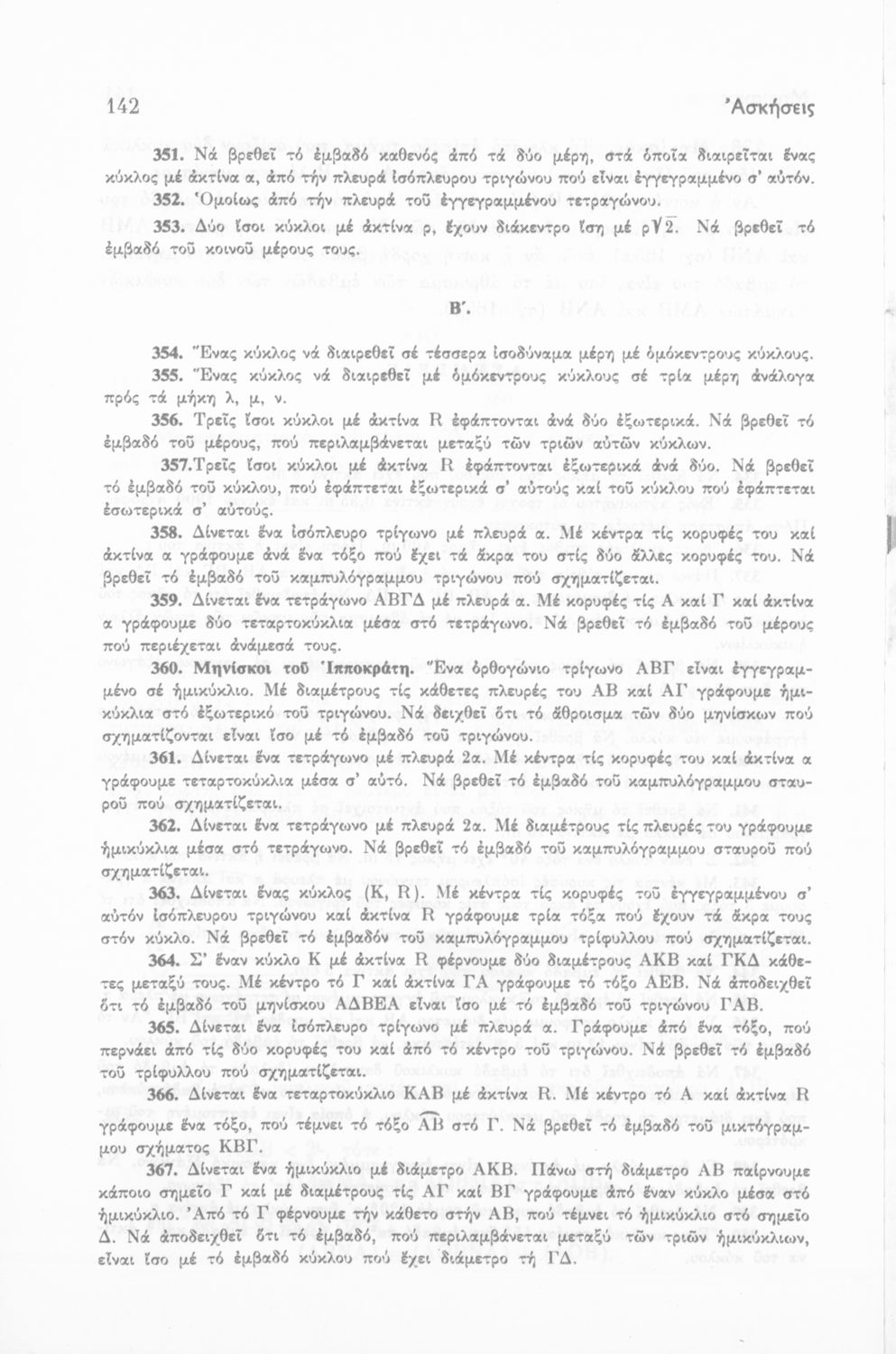 Σχολικό εγχειρίδιο Γεωμετρίας για τις Α΄, Β΄ και Γ΄ Λυκείου που περιλαμβάνει θεωρία και ασκήσεις και είναι χωρισμένο σε Επιπεδομετρία και Στερεομετρία.