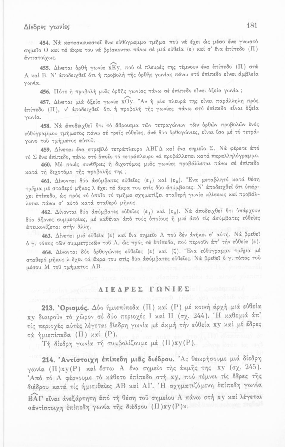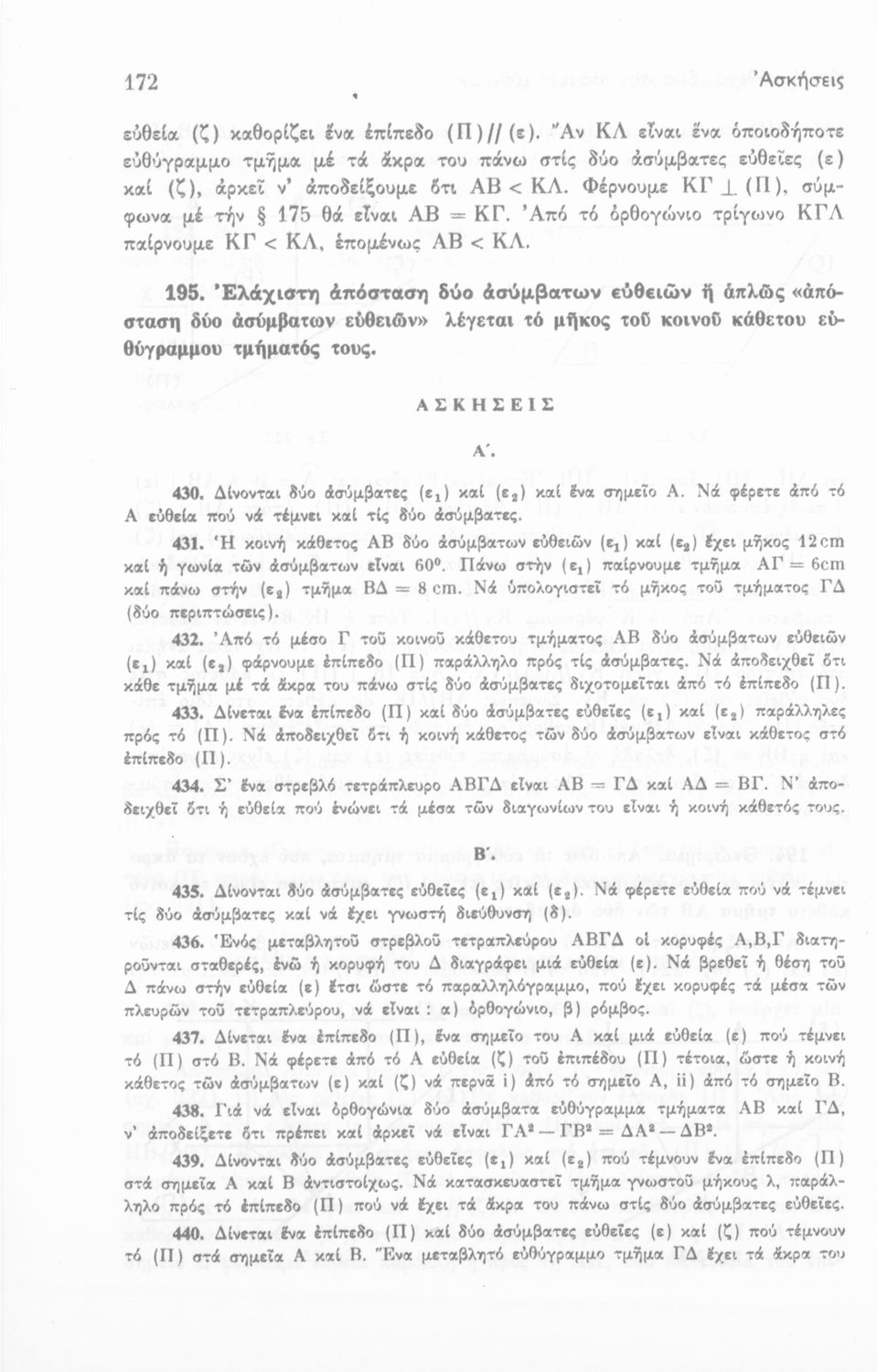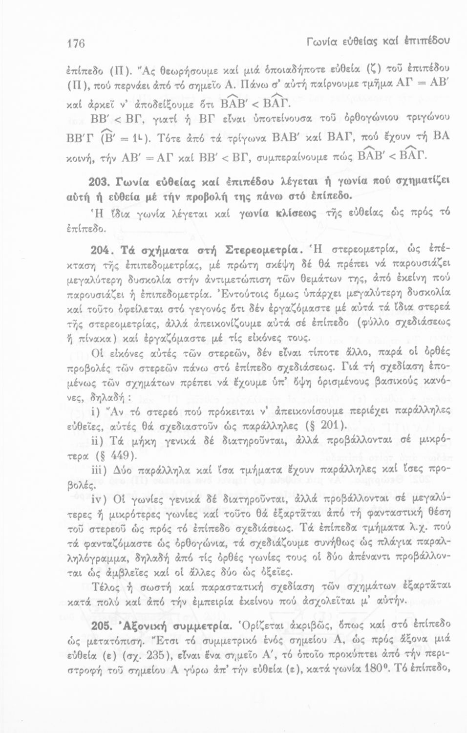 Σχολικό εγχειρίδιο Γεωμετρίας για τις Α΄, Β΄ και Γ΄ Λυκείου που περιλαμβάνει θεωρία και ασκήσεις και είναι χωρισμένο σε Επιπεδομετρία και Στερεομετρία.
