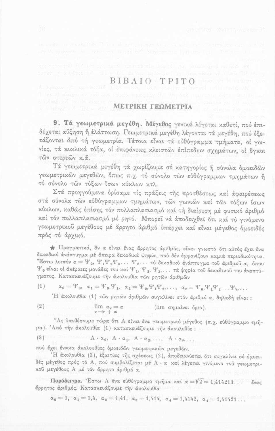 Σχολικό εγχειρίδιο Γεωμετρίας για τις Α΄, Β΄ και Γ΄ Λυκείου που περιλαμβάνει θεωρία και ασκήσεις και είναι χωρισμένο σε Επιπεδομετρία και Στερεομετρία.
