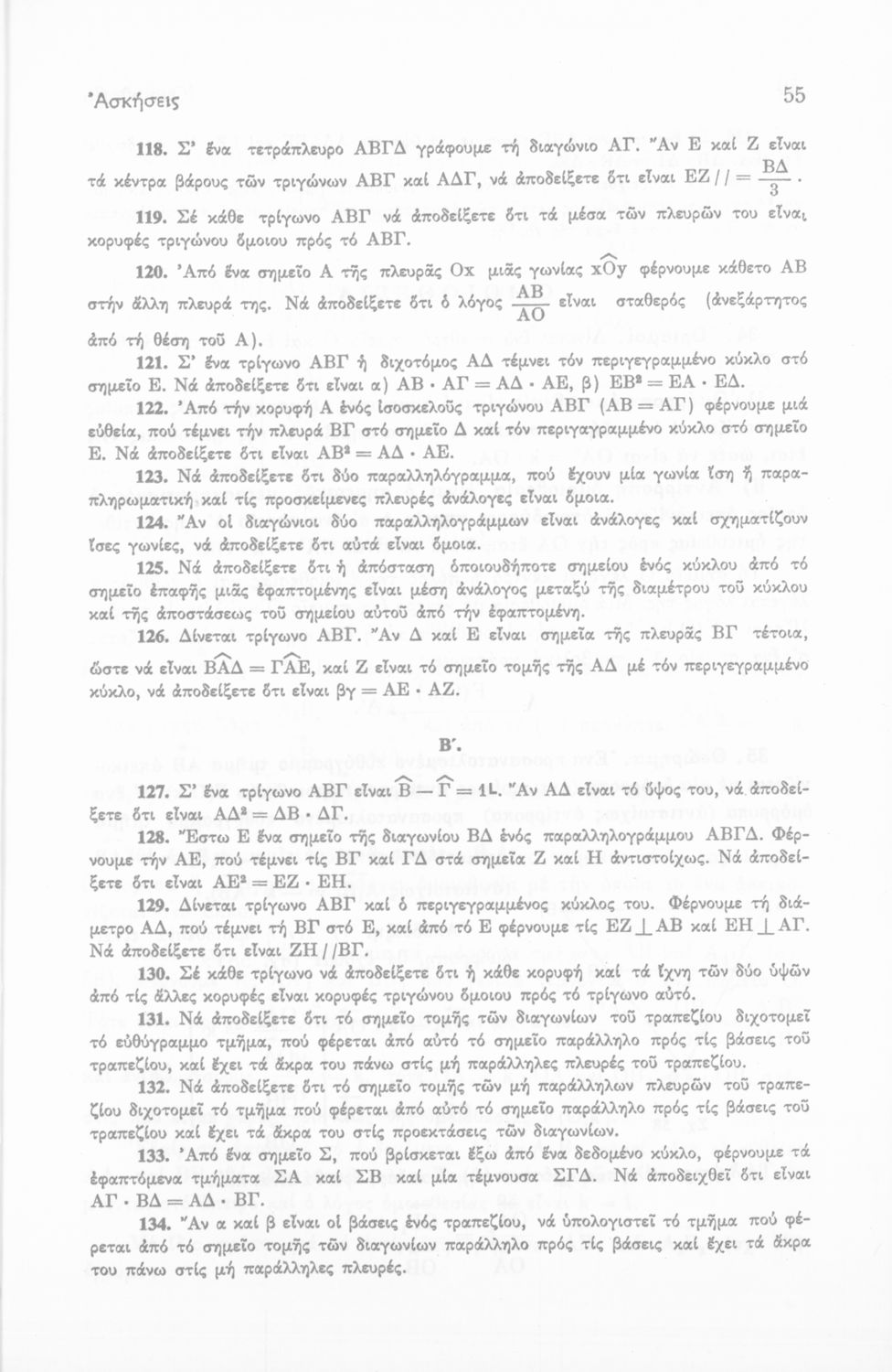 Σχολικό εγχειρίδιο Γεωμετρίας για τις Α΄, Β΄ και Γ΄ Λυκείου που περιλαμβάνει θεωρία και ασκήσεις και είναι χωρισμένο σε Επιπεδομετρία και Στερεομετρία.