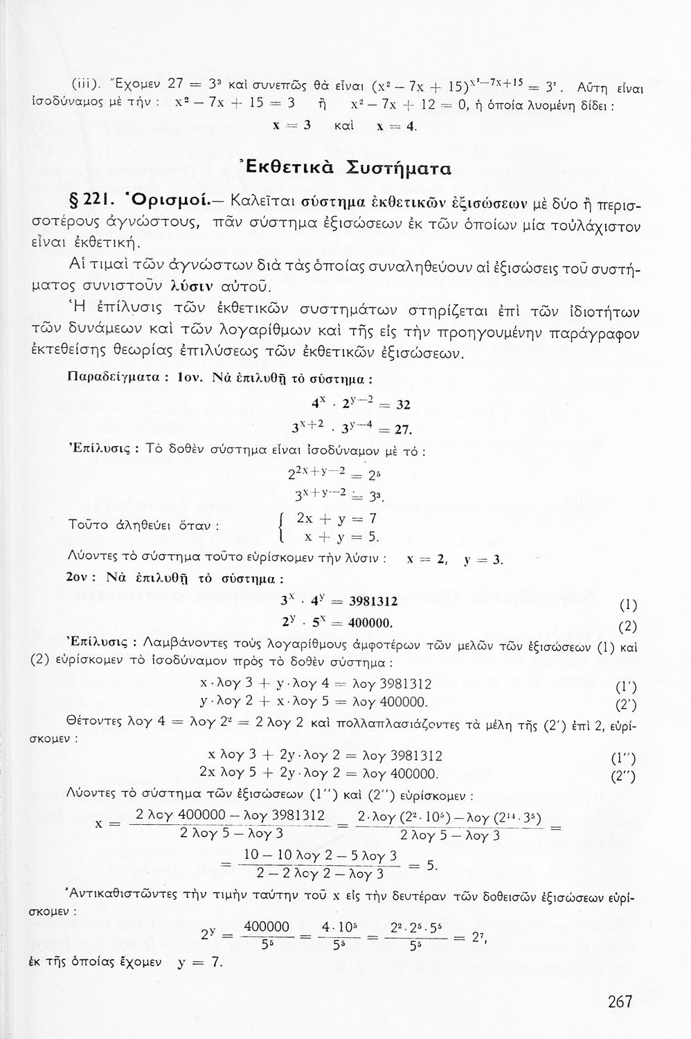Σχολικό εγχειρίδιο Μαθηματικών Γυμνασίου που είναι χωρισμένο σε θεωρήματα, παραδείγματα και ασκήσεις και περιλαμβάνει στοιχεία Ανώτερης Άλγεβρας και Μαθηματικής Ανάλυσης.