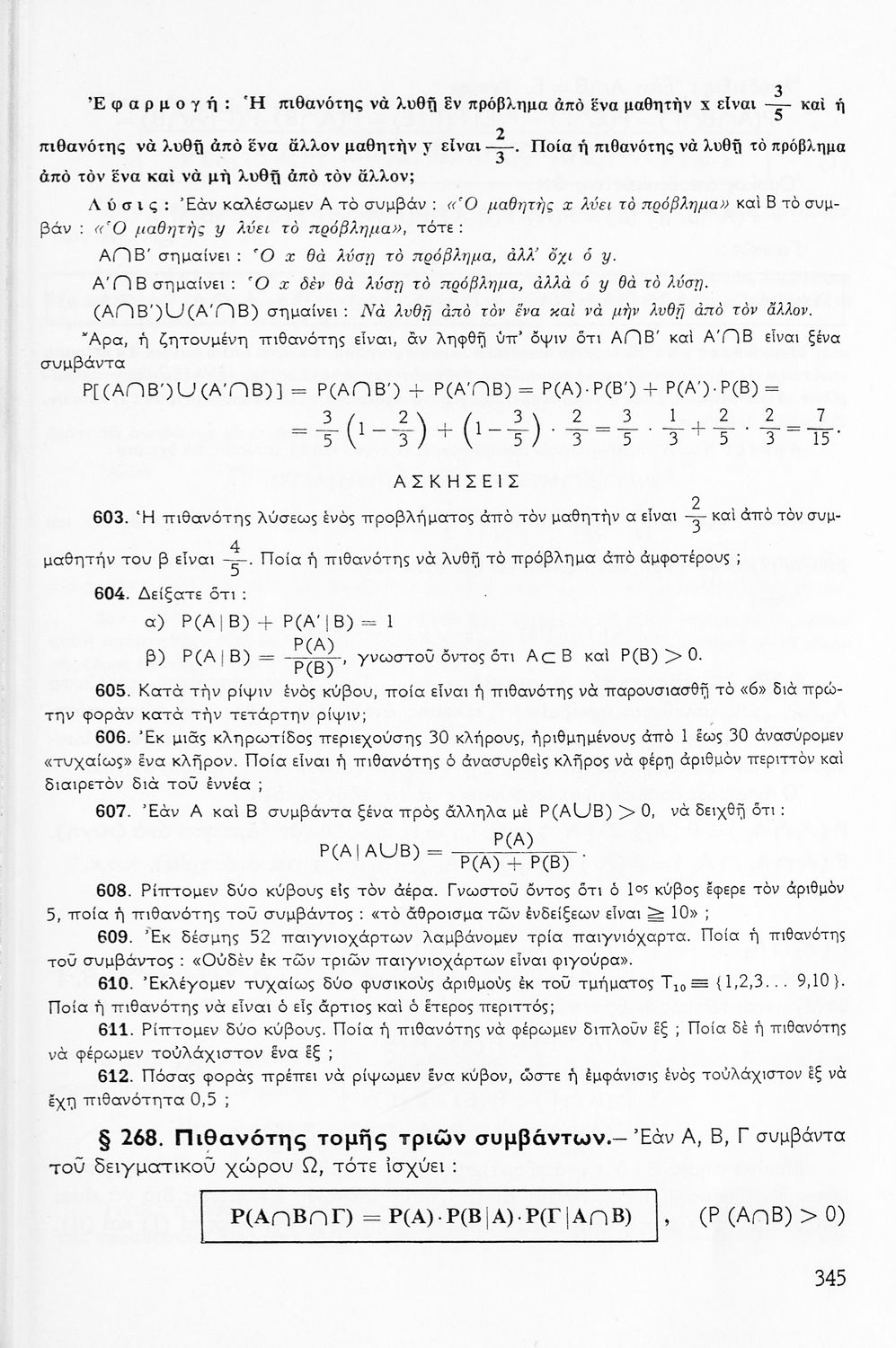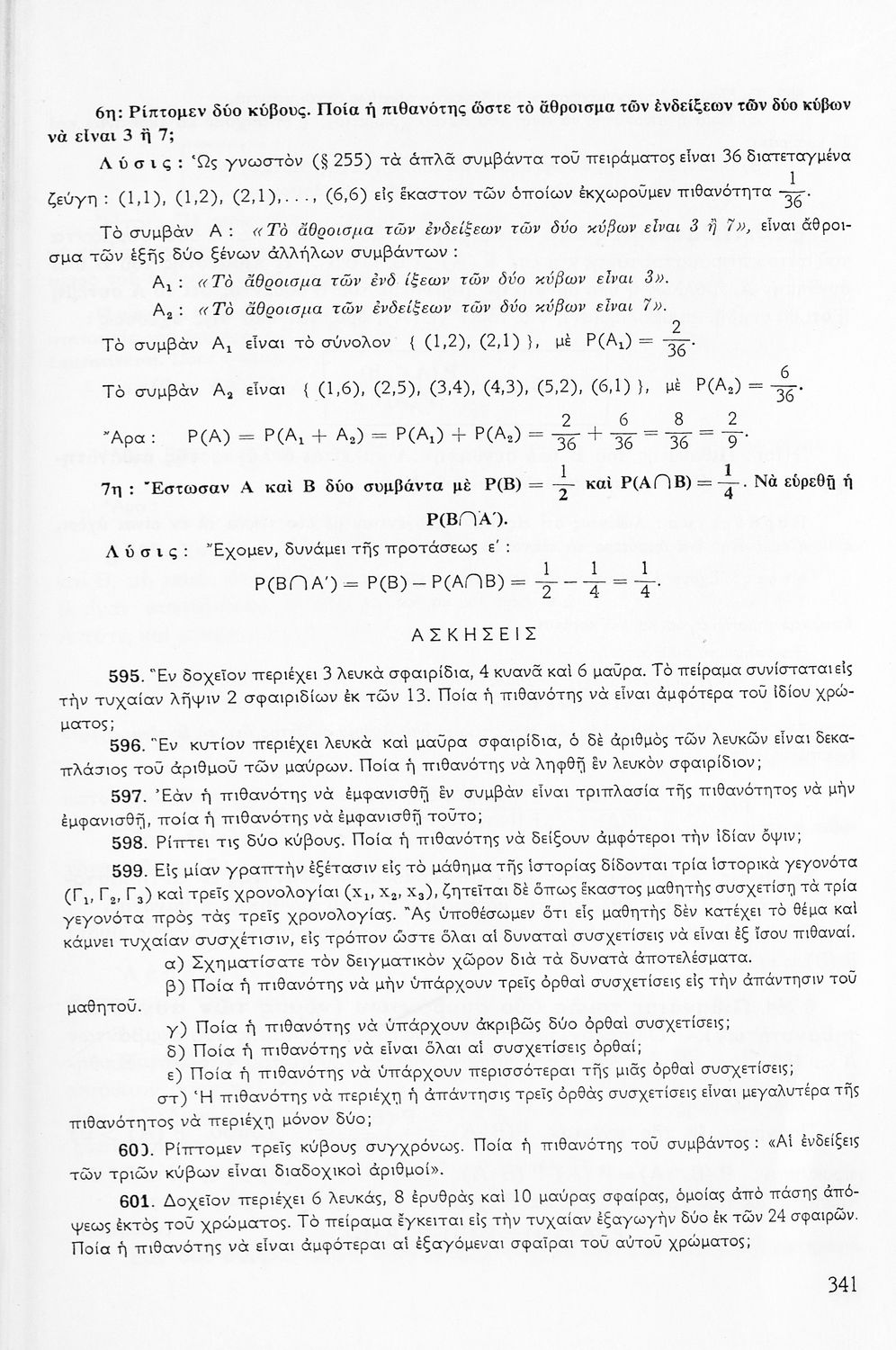 Σχολικό εγχειρίδιο Μαθηματικών ΣΤ΄ Γυμνασίου που είναι χωρισμένο σε θεωρήματα, παραδείγματα και ασκήσεις και περιλαμβάνει στοιχεία Ανώτερης Άλγεβρας και Μαθηματικής Ανάλυσης.
