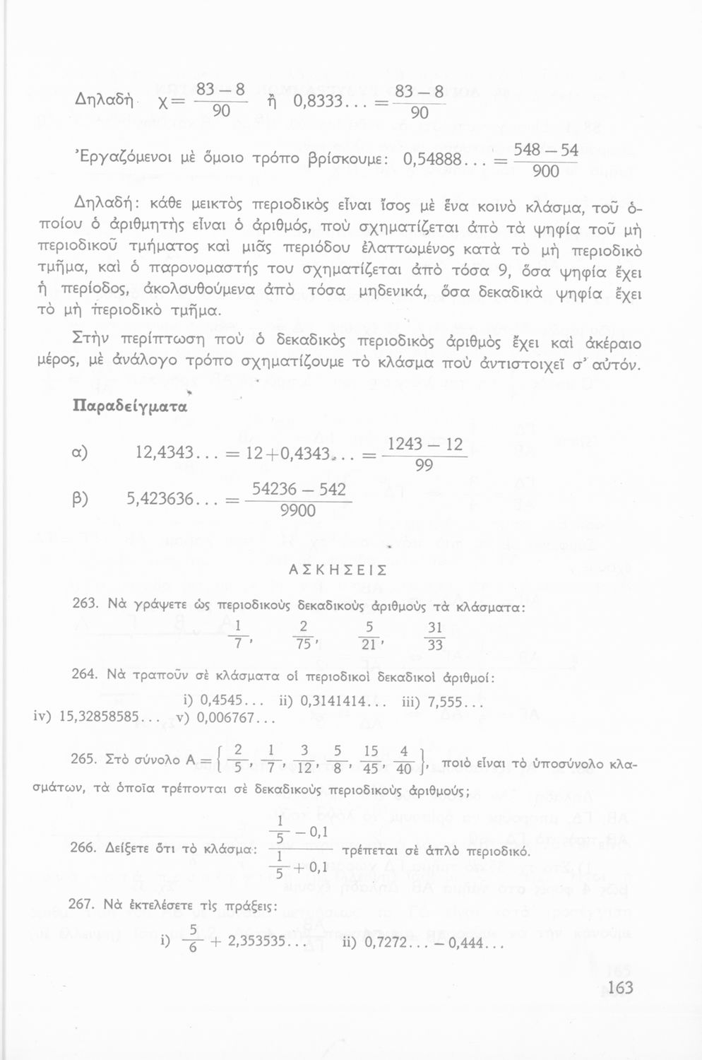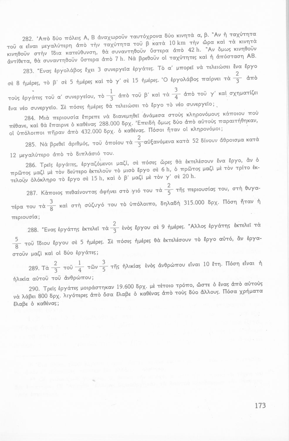 Σχολικό εγχειρίδιο Μαθηματικών Γυμνασίου που είναι χωρισμένο σε θεωρήματα, παραδείγματα και ασκήσεις και περιλαμβάνει στοιχεία Ανώτερης Άλγεβρας και Μαθηματικής Ανάλυσης.