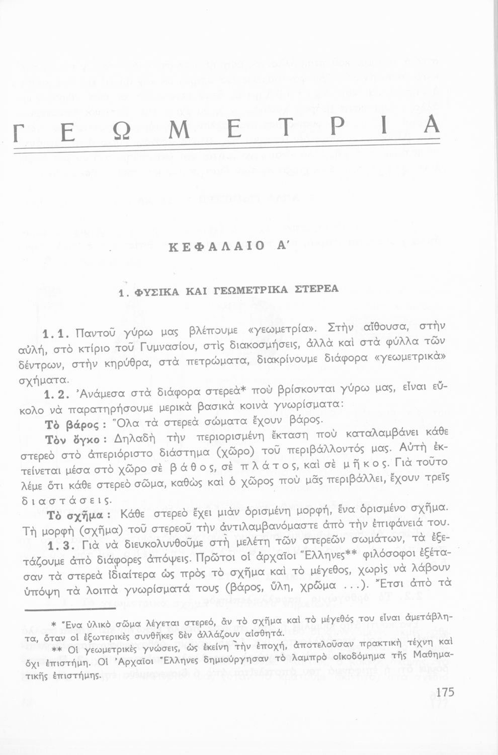 Σχολικό εγχειρίδιο Γεωμετρίας για την Α΄ και Β΄ Γυμνασίου που περιλαμβάνει θεωρία και ασκήσεις και είναι χωρισμένο σε Επιπεδομετρία και Στερεομετρία.