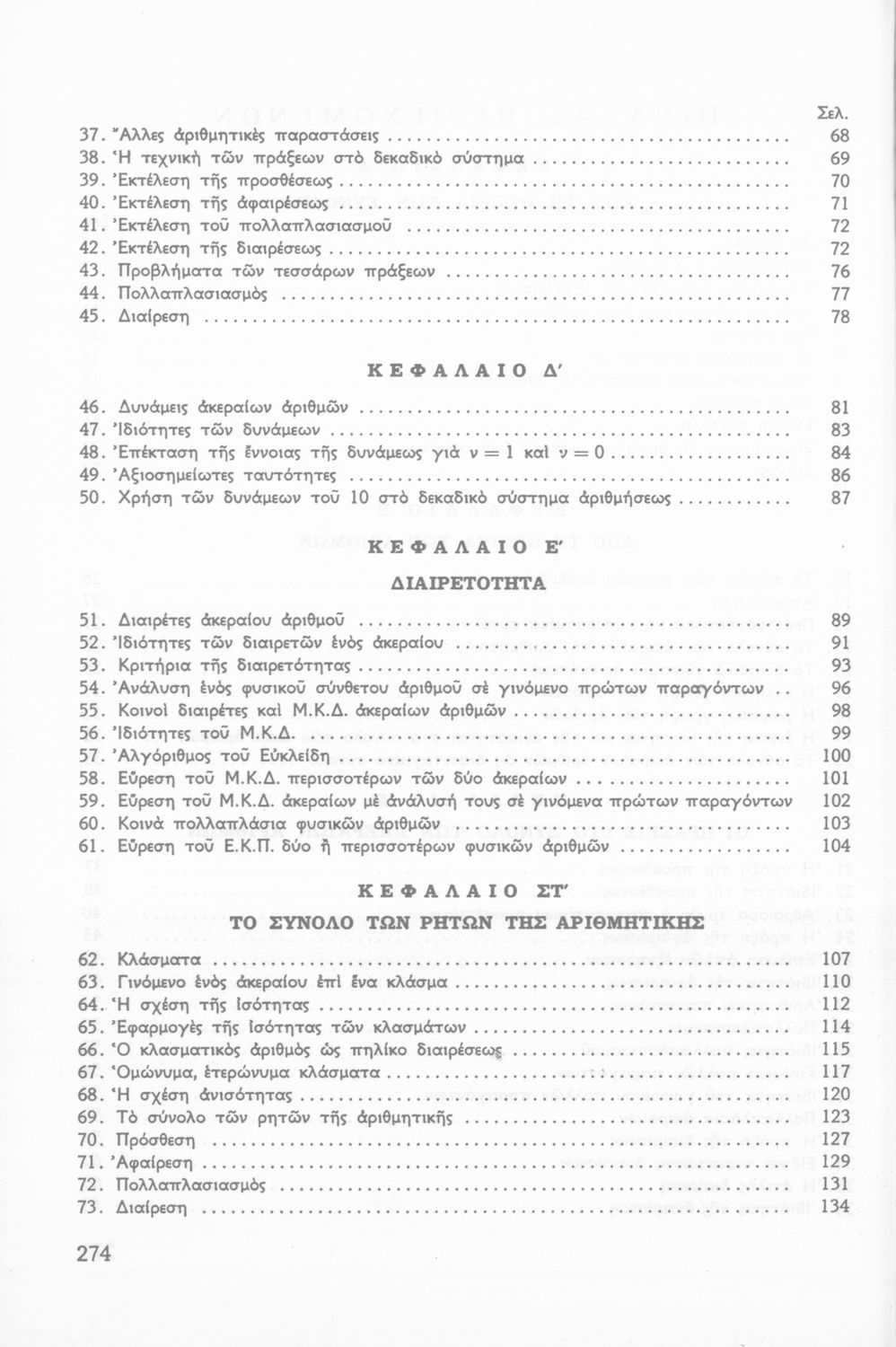 Σχολικό εγχειρίδιο Μαθηματικών Δ΄ Γυμνασίου χωρισμένο σε ορισμούς, παραδείγματα και ασκήσεις. Περιέχει στοιχεία Περιγραφικής Στατιστικής και Τριγωνομετρίας. Φέρει το σύμβολο της δικτατορίας.
