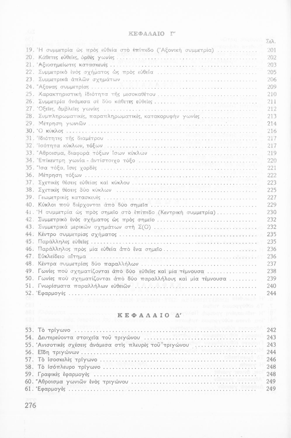 Σχολικό εγχειρίδιο Γεωμετρίας για τις Α΄, Β΄, Γ΄ Γυμνασίου που είναι χωρισμένο σε Επιπεδομετρία και Στερεομετρία και περιλαμβάνει θεωρία και ασκήσεις.