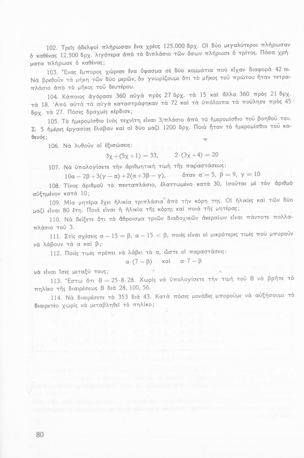 Σχολικό εγχειρίδιο Άλγεβρας Γυμνασίου που περιλαμβάνει θεωρία, ασκήσεις και στοιχεία λογιστικής.