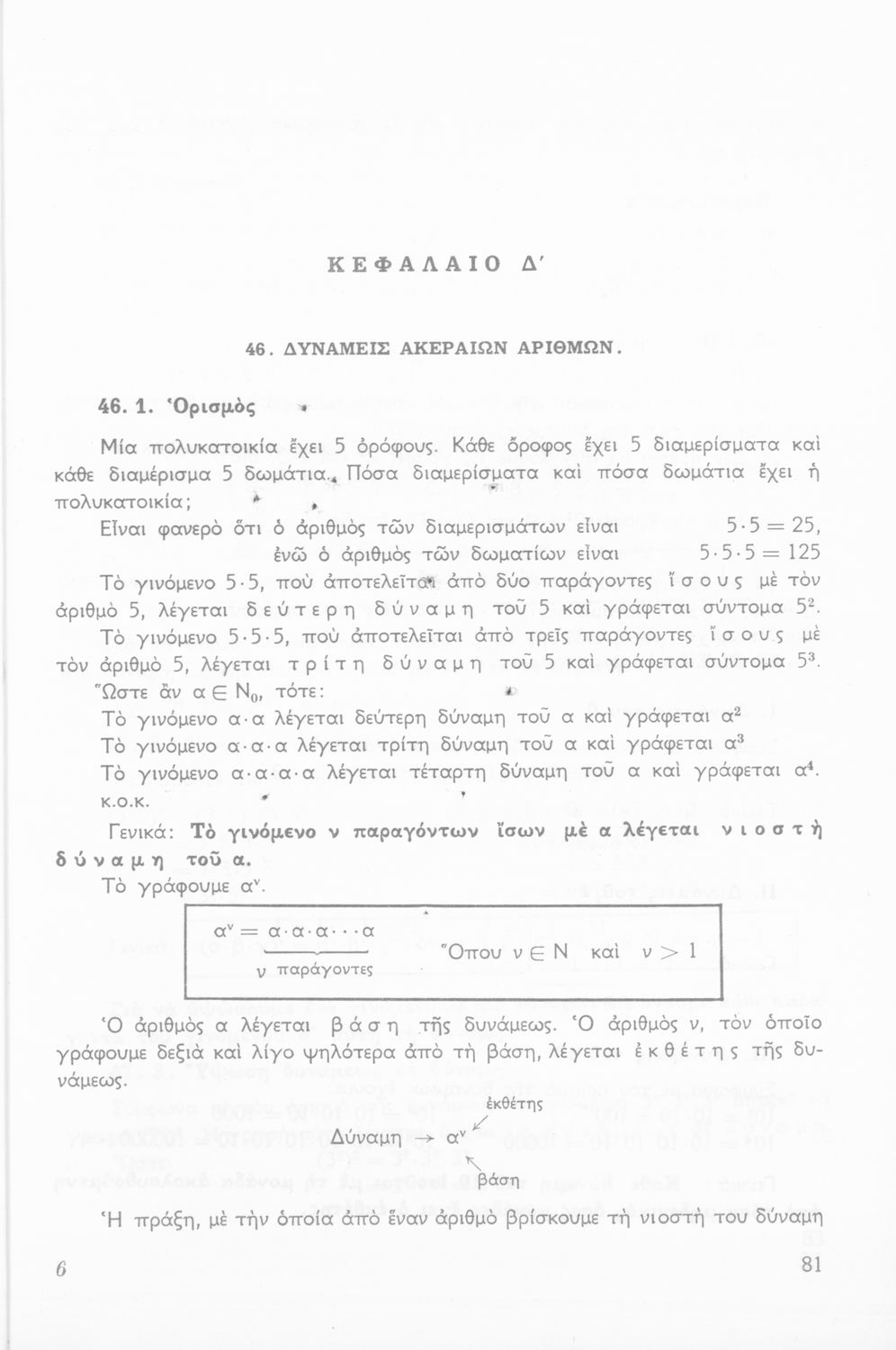 Σχολικό εγχειρίδιο Μαθηματικών Δ΄ Γυμνασίου χωρισμένο σε ορισμούς, παραδείγματα και ασκήσεις. Περιέχει στοιχεία Περιγραφικής Στατιστικής και Τριγωνομετρίας. Φέρει το σύμβολο της δικτατορίας.