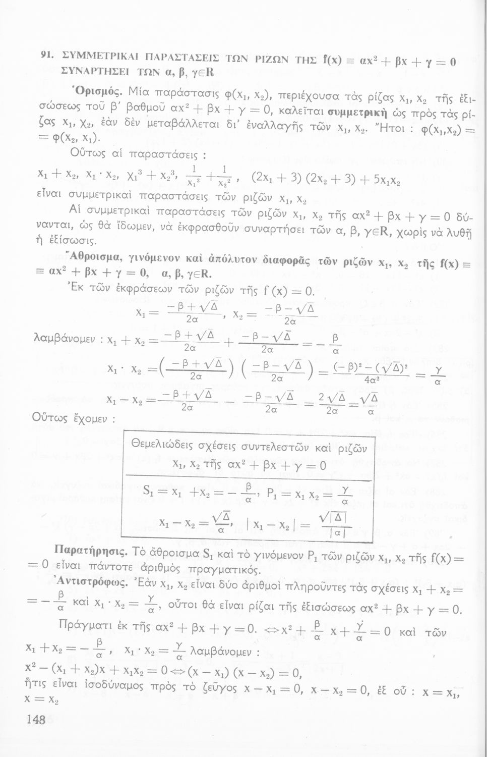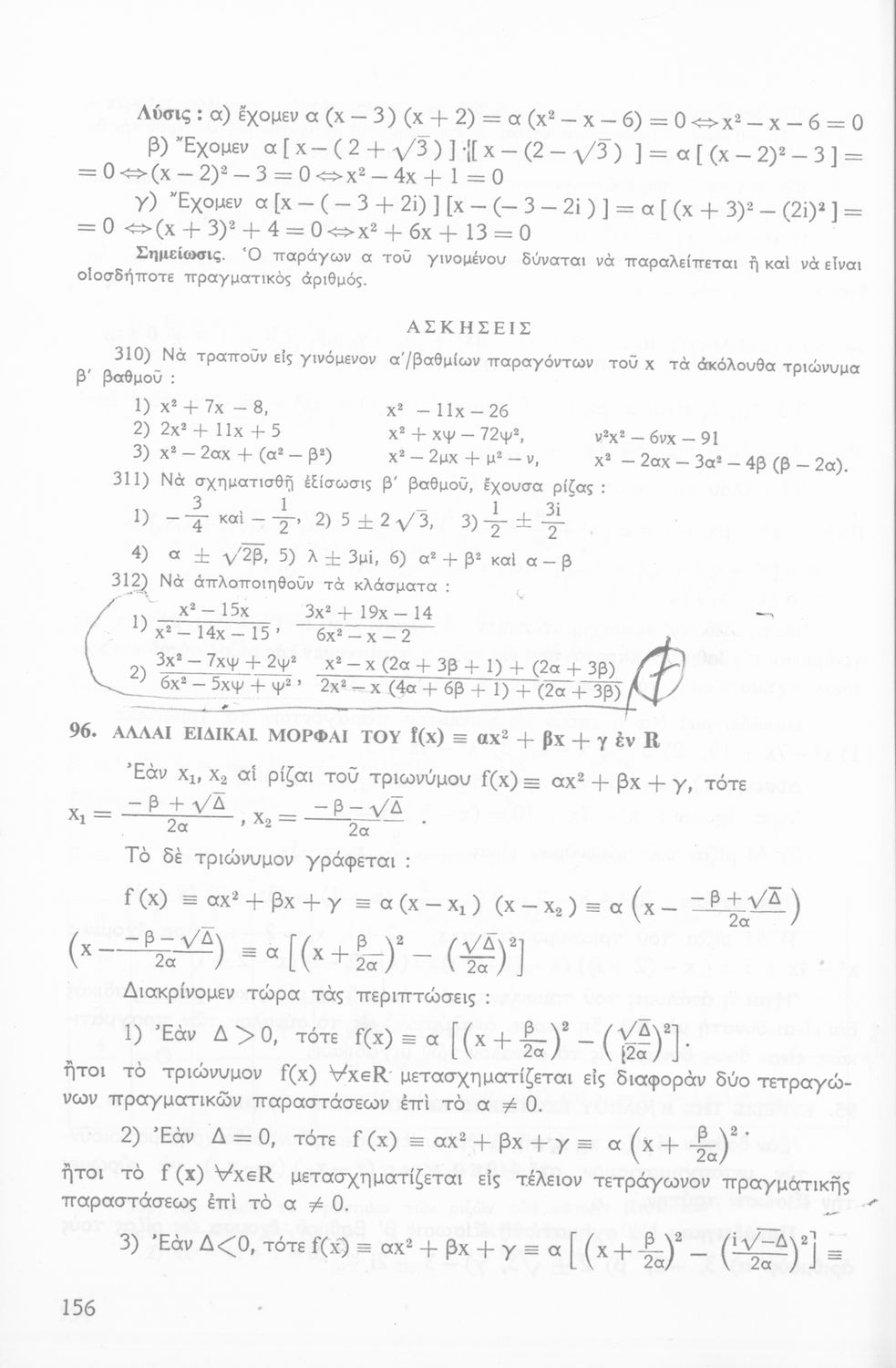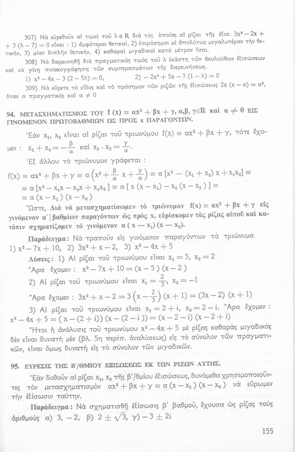 Σχολικό εγχειρίδιο Μαθηματικών Γυμνασίου που είναι χωρισμένο σε θεωρήματα, παραδείγματα και ασκήσεις και περιλαμβάνει στοιχεία Ανώτερης Άλγεβρας και Μαθηματικής Ανάλυσης.
