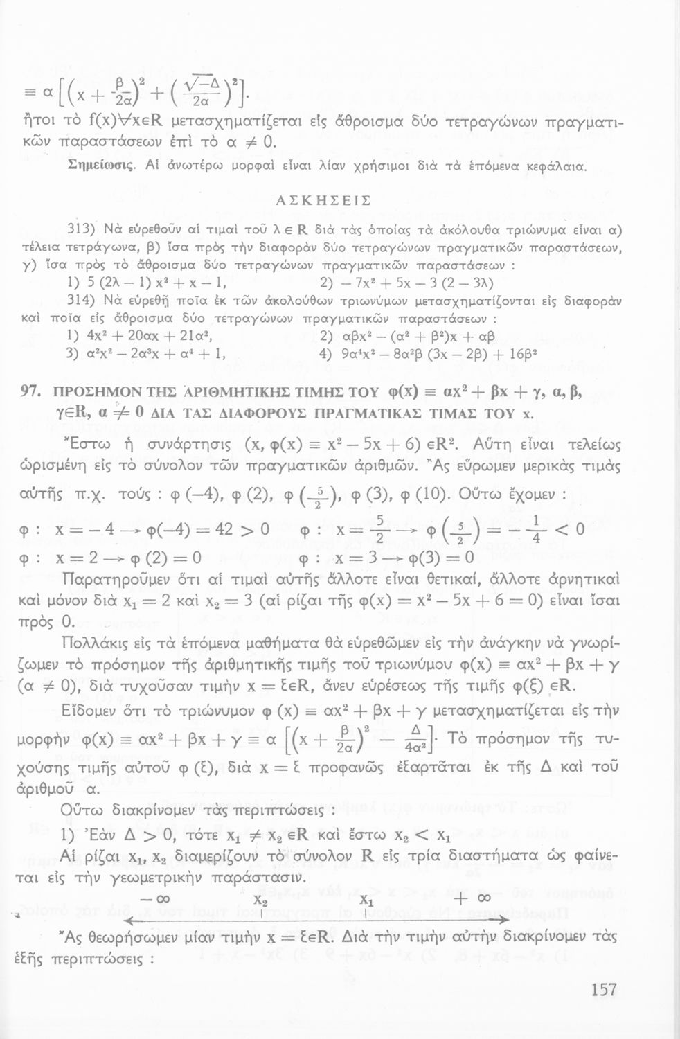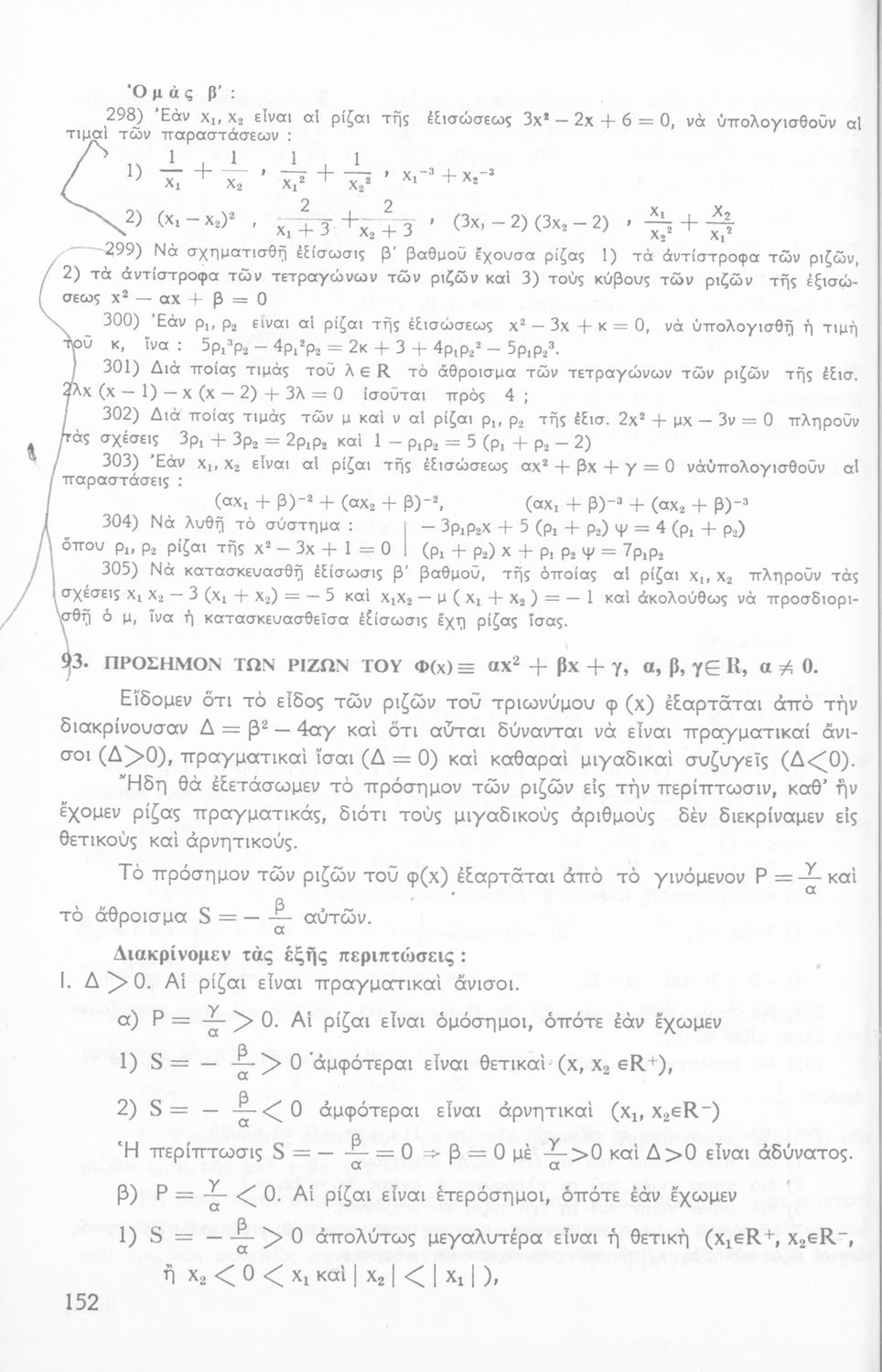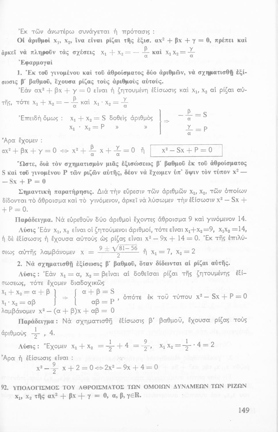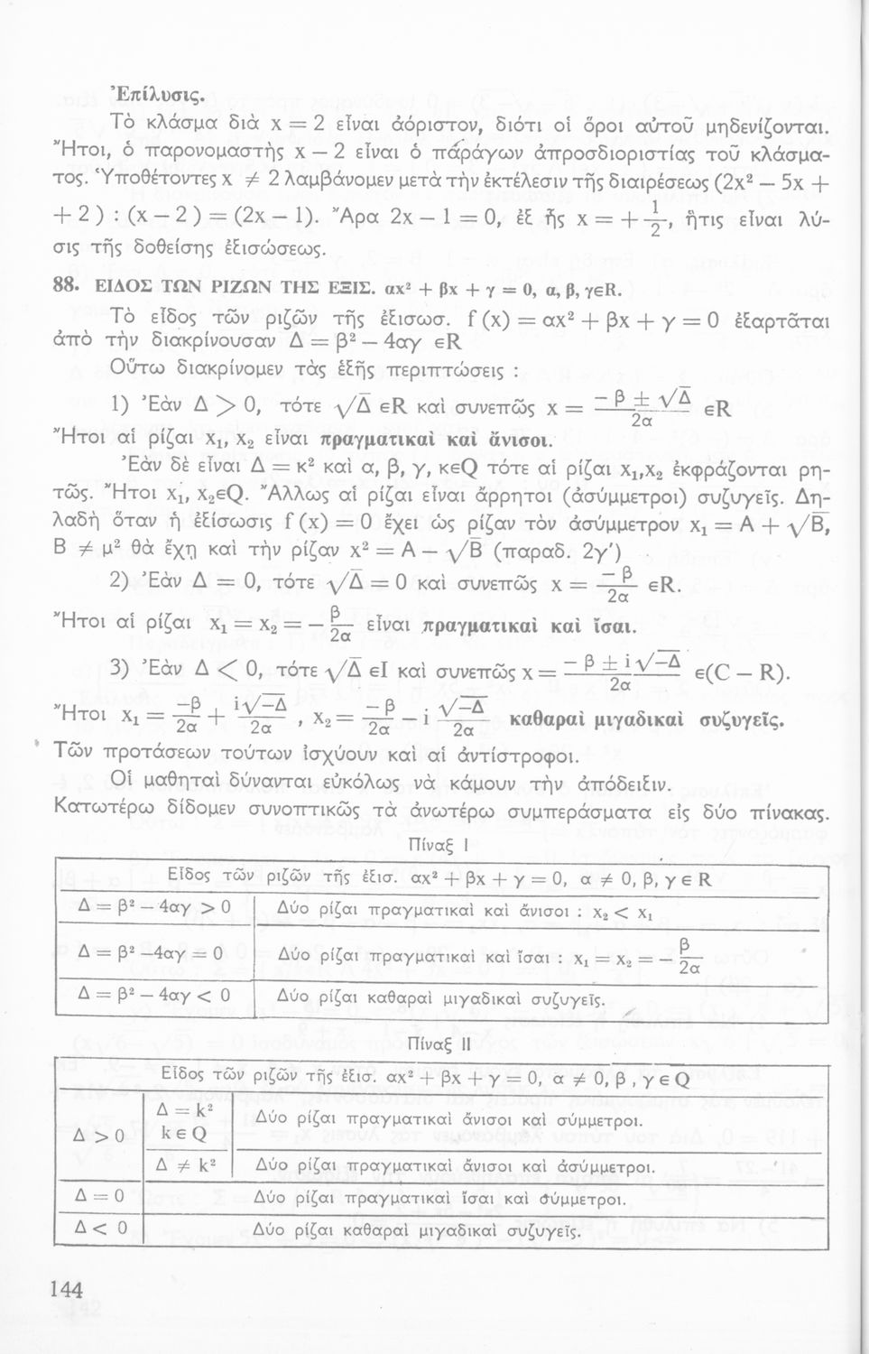 Σχολικό εγχειρίδιο Μαθηματικών Γυμνασίου που είναι χωρισμένο σε θεωρήματα, παραδείγματα και ασκήσεις και περιλαμβάνει στοιχεία Ανώτερης Άλγεβρας και Μαθηματικής Ανάλυσης.