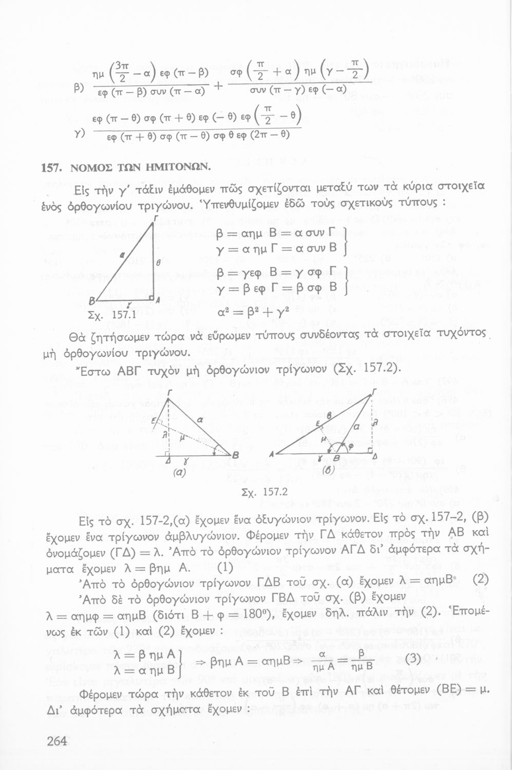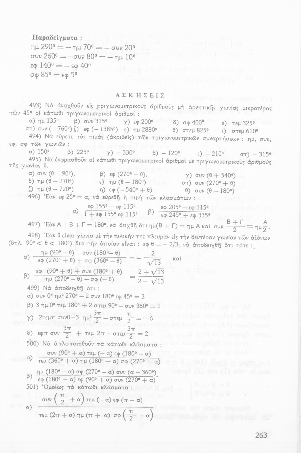 Σχολικό εγχειρίδιο Μαθηματικών για την Ε΄ Γυμνασίου, χωρισμένο σε προβλήματα, εφαρμογές και ασκήσεις, που εστιάζει στην Τριγωνομετρία. Φέρει το σύμβολο της δικτατορίας.