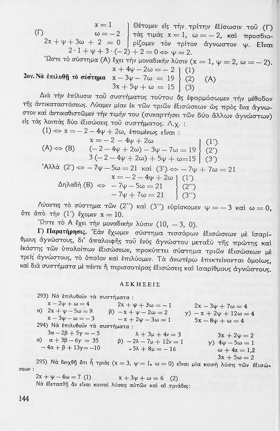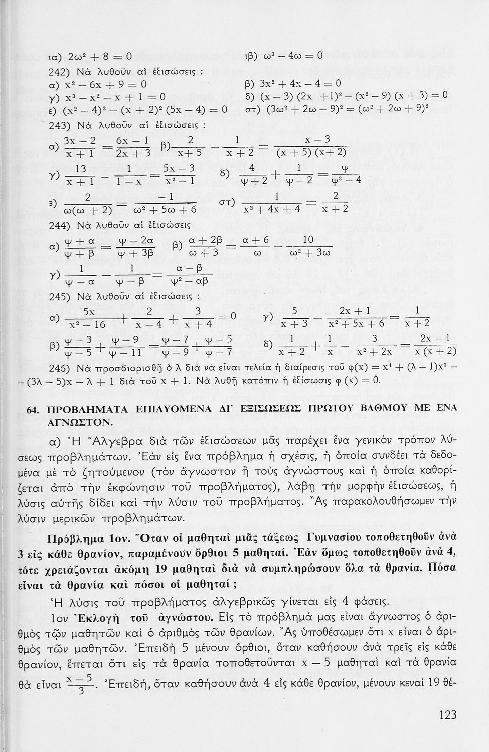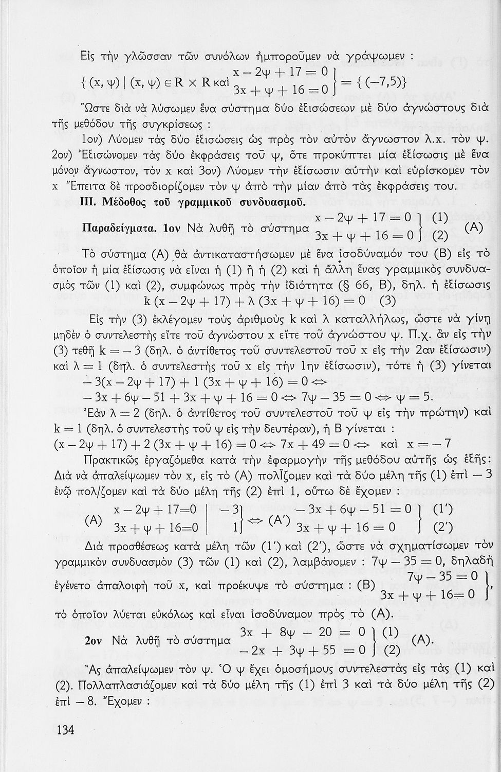 Σχολικό εγχειρίδιο μαθηματικών Γ΄ Γυμνασίου που περιλαμβάνει θεωρία, παραδείγματα και ασκήσεις. Φέρει το σύμβολο της δικτατορίας.