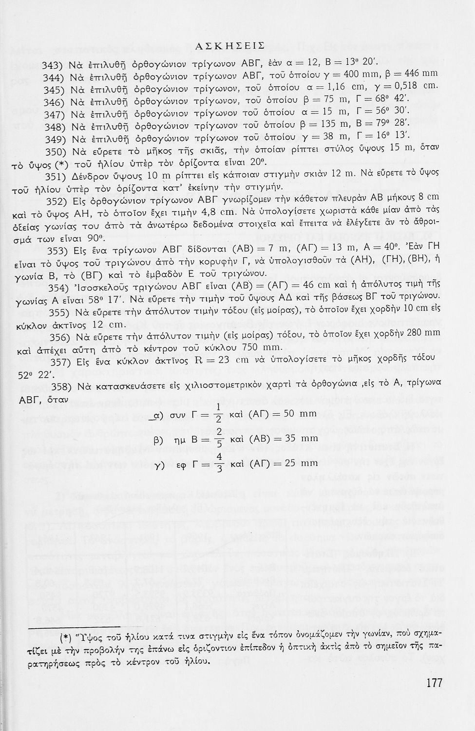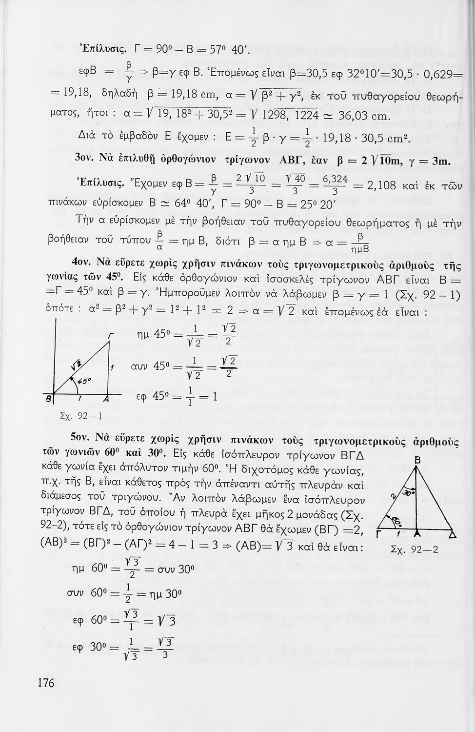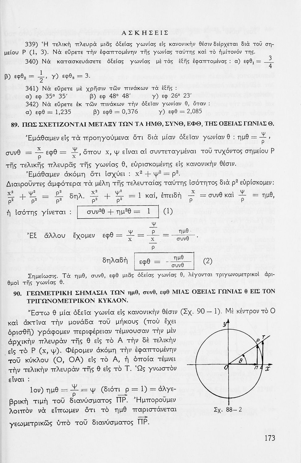Σχολικό εγχειρίδιο Μαθηματικών για την Ε΄ Γυμνασίου, χωρισμένο σε προβλήματα, εφαρμογές και ασκήσεις, που εστιάζει στην Τριγωνομετρία. Φέρει το σύμβολο της δικτατορίας.