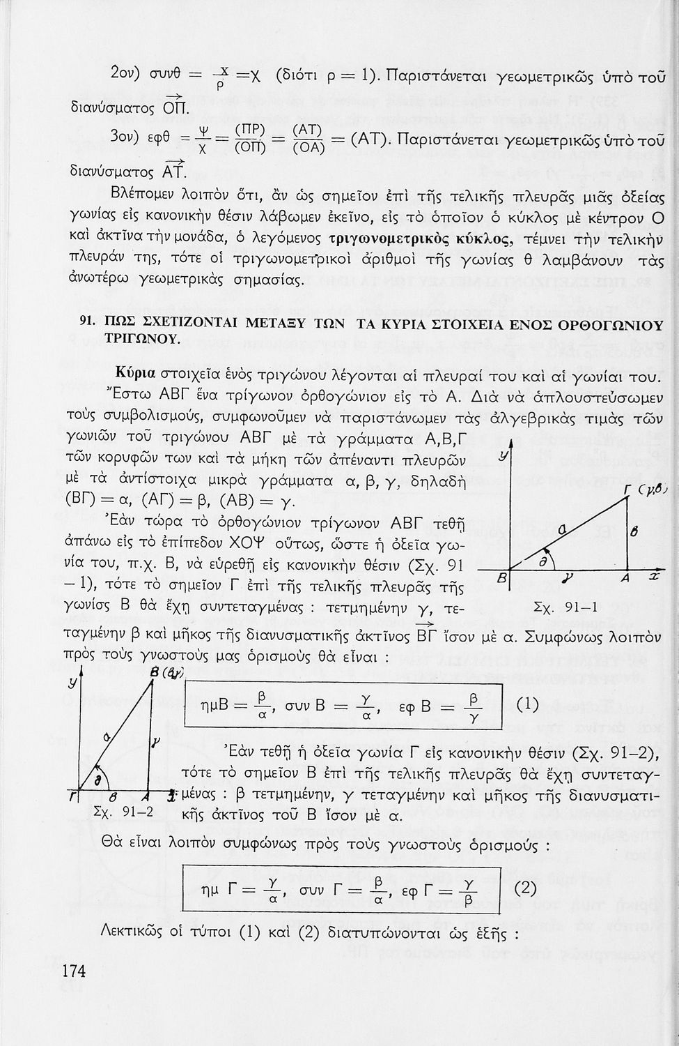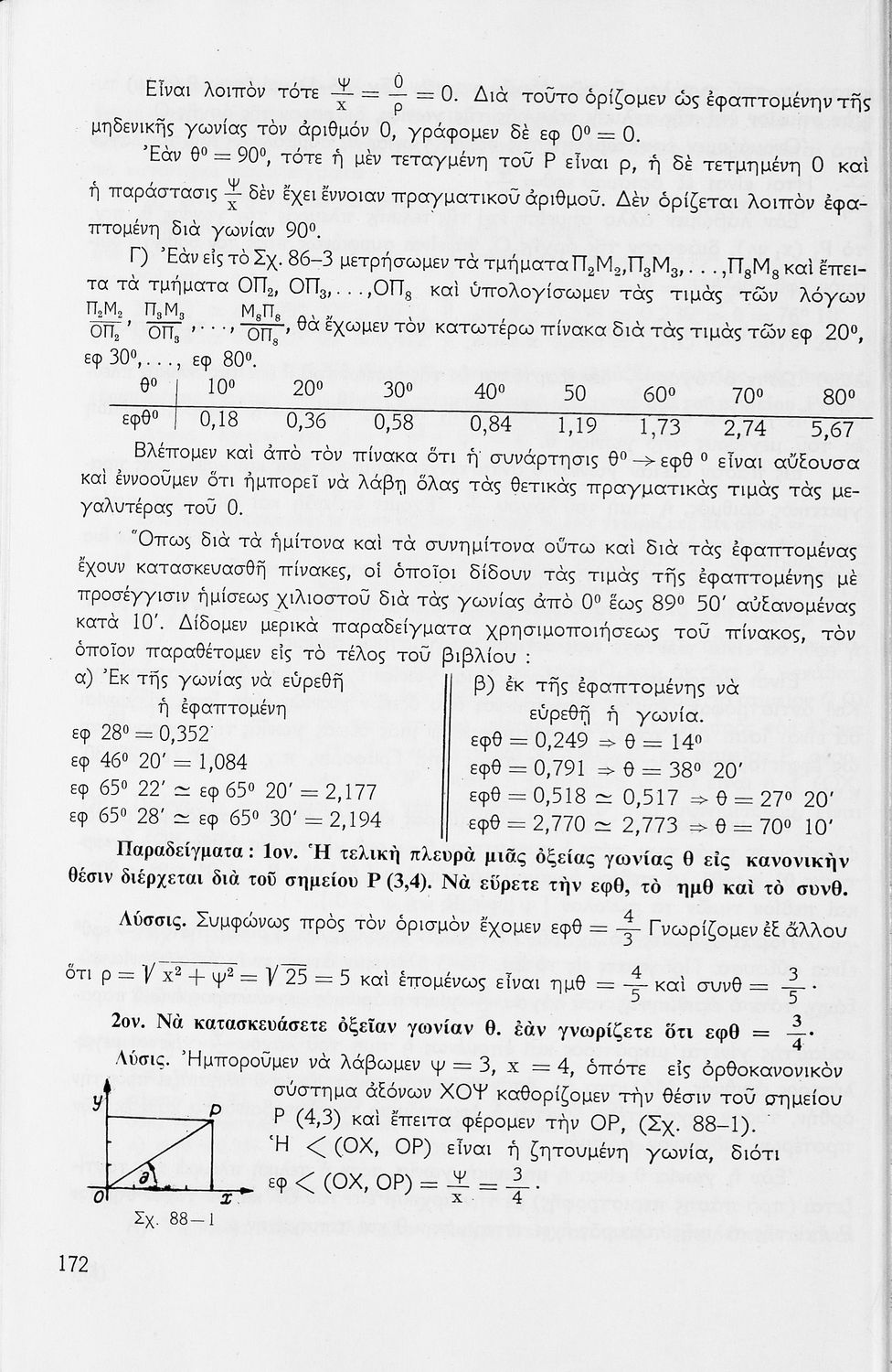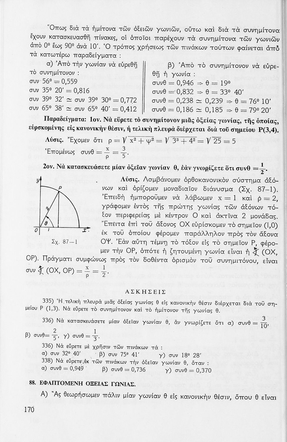 Σχολικό εγχειρίδιο Μαθηματικών για την Ε΄ Γυμνασίου, χωρισμένο σε προβλήματα, εφαρμογές και ασκήσεις, που εστιάζει στην Τριγωνομετρία. Φέρει το σύμβολο της δικτατορίας.