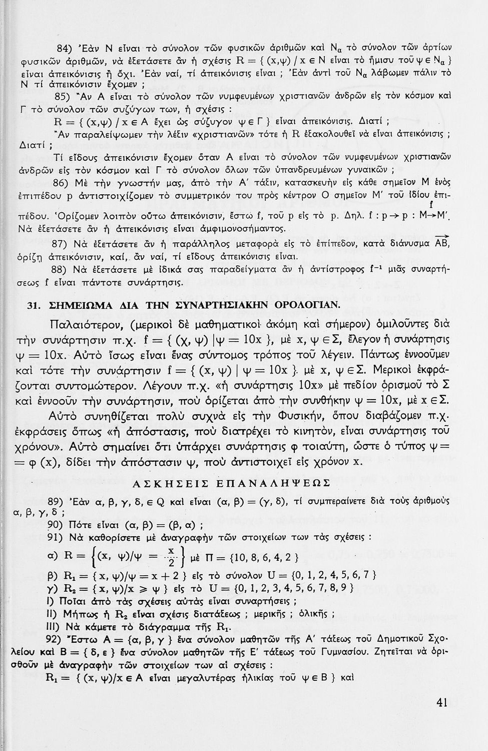 Σχολικό εγχειρίδιο μαθηματικών Γ΄ Γυμνασίου που περιλαμβάνει θεωρία, παραδείγματα και ασκήσεις. Φέρει το σύμβολο της δικτατορίας.
