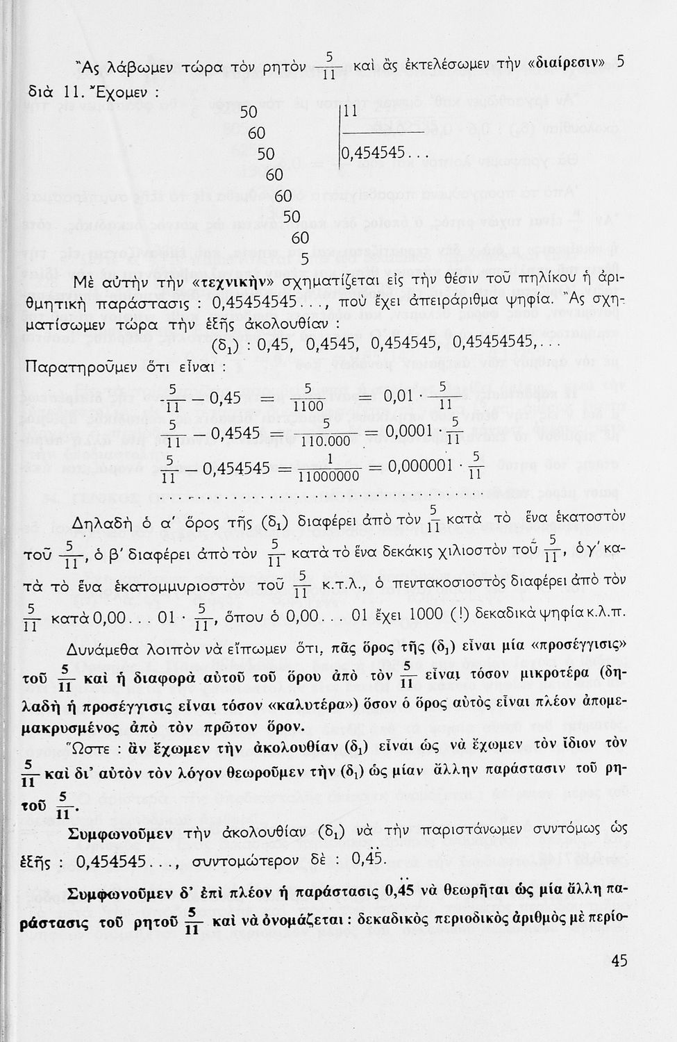 Σχολικό εγχειρίδιο Μαθηματικών για την Ε΄ Γυμνασίου, χωρισμένο σε προβλήματα, εφαρμογές και ασκήσεις, που εστιάζει στην Τριγωνομετρία. Φέρει το σύμβολο της δικτατορίας.