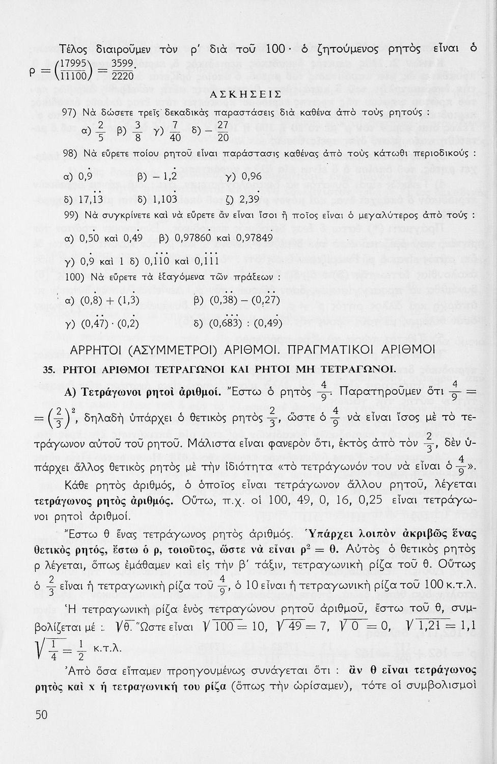 Παρουσίαση περιεχομένου: Σχολικό εγχειρίδιο Μαθηματικών Γ΄ Γυμνασίου που περιλαμβάνει θεωρία, παραδείγματα και ασκήσεις. Φέρει το σύμβολο της δικτατορίας.