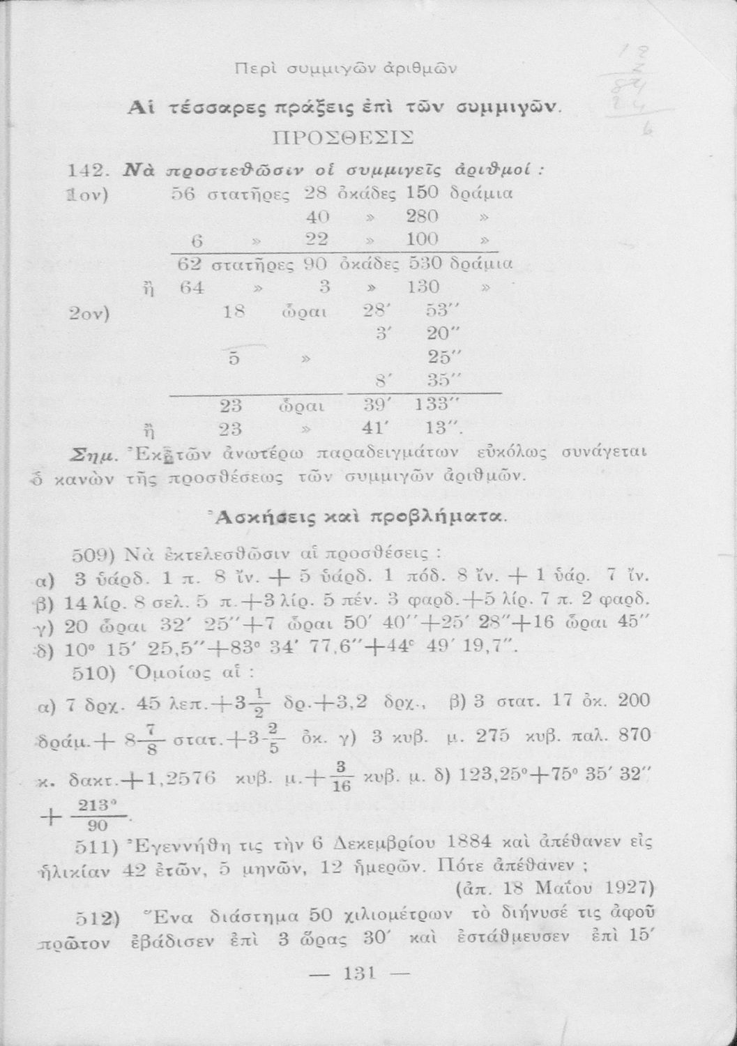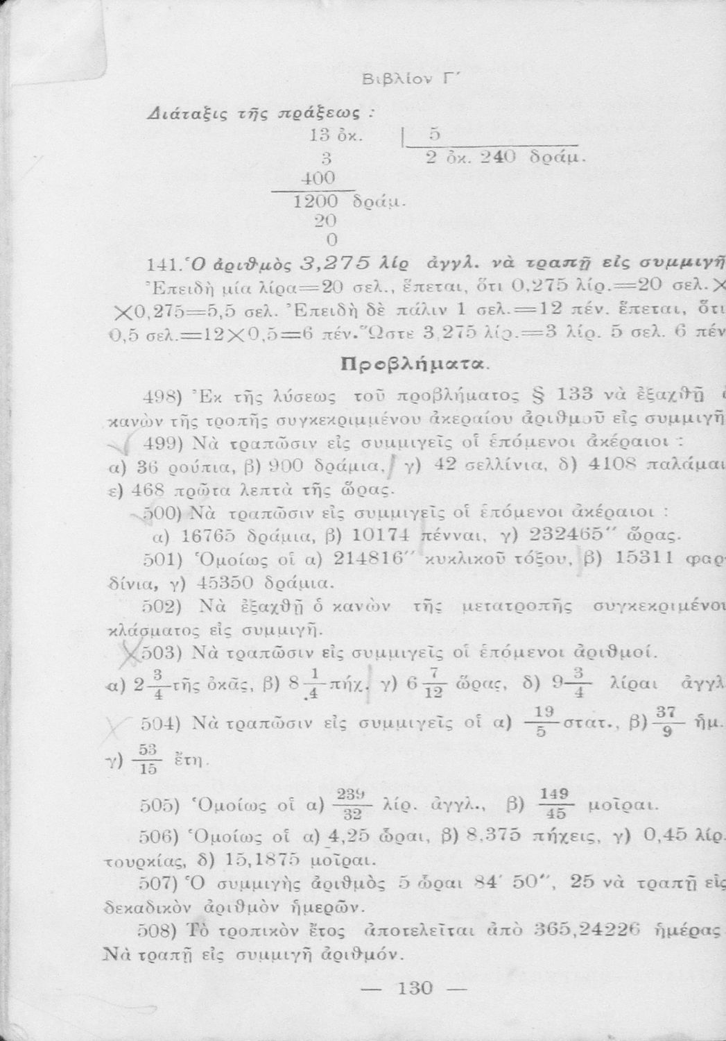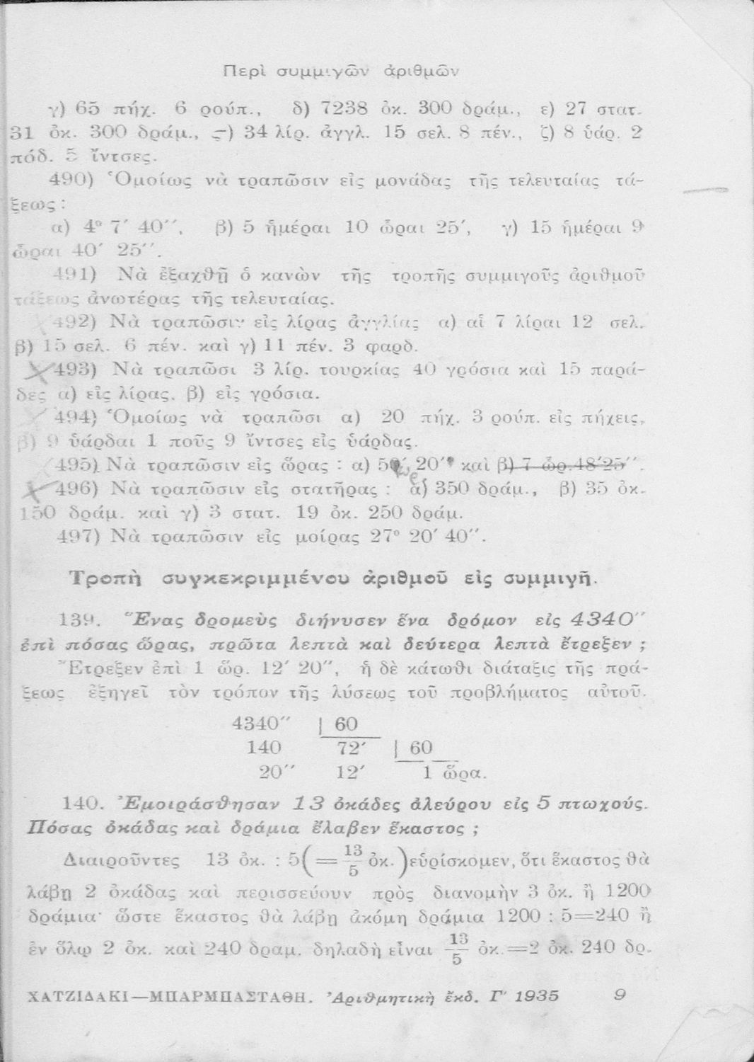 LDR 01449 2200217 4500 035 ## _a01-19728 040 ## _aΙνστιτούτο Εκπαιδευτικής Πολιτικής 041 ## _ael 100 ## _aΙω. Ν. Χατζιδάκις _aΧρ. Α. Μπαρμπαστάθης 110 ## _a19728 245 0# _aΑριθμητική δια την Α΄, Β΄, Γ΄ τάξιν των Εξαταξίων Γυμνασίων 250 ## _a3η Έκδοση 260 ## _aΑθήνα _bΙωάννης Δ. Κολλάρος _c1935 300 ## _a207 _c19 520 ## _aΣχολικό εγχειρίδιο Αριθμητικής για τις Α΄, Β΄ και Γ΄ τάξεις των Εξαταξίων Γυμνασίων που εστιάζει τις αριθμητικές πράξεις, τα κλάσματα, τους δεκαδικούς αριθμούς και είναι χωρισμένο σε θεωρία και ασκήσεις. Περιλαμβάνει και στοιχεία Θεωρητικής Αριθμητικής. 521 ## _aΑ' Γυμνασίου / Β' Γυμνασίου / Γ' Γυμνασίου 522 ## _aΕλλάδα 546 ## _aΔημοτική 563 ## _aΣκληρό Εξώφυλλο 583 ## _a41062/31-7-1933 _c1935 650 #4 _aΑριθμητικές πράξεις _aΔεκαδικοί αριθμοί _aΙδιότητες των ακεραίων αριθμών _aΠρώτοι αριθμοί _aΣυμμιγείς αριθμοί