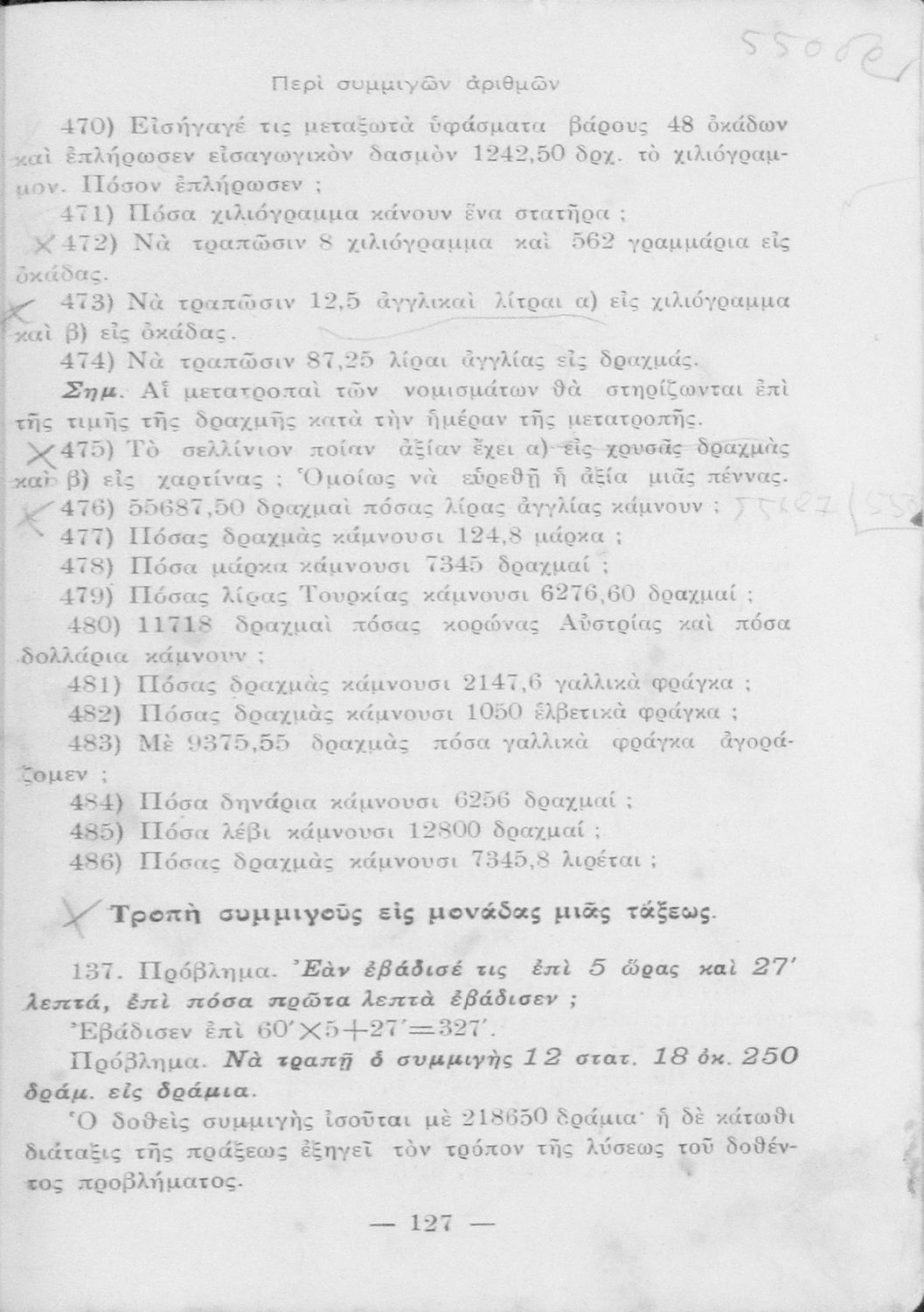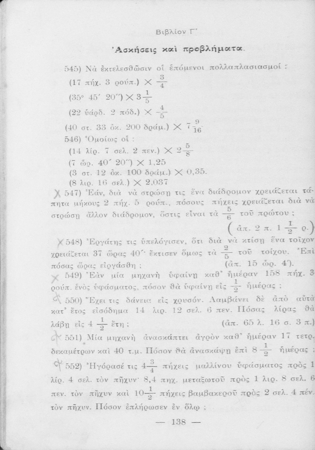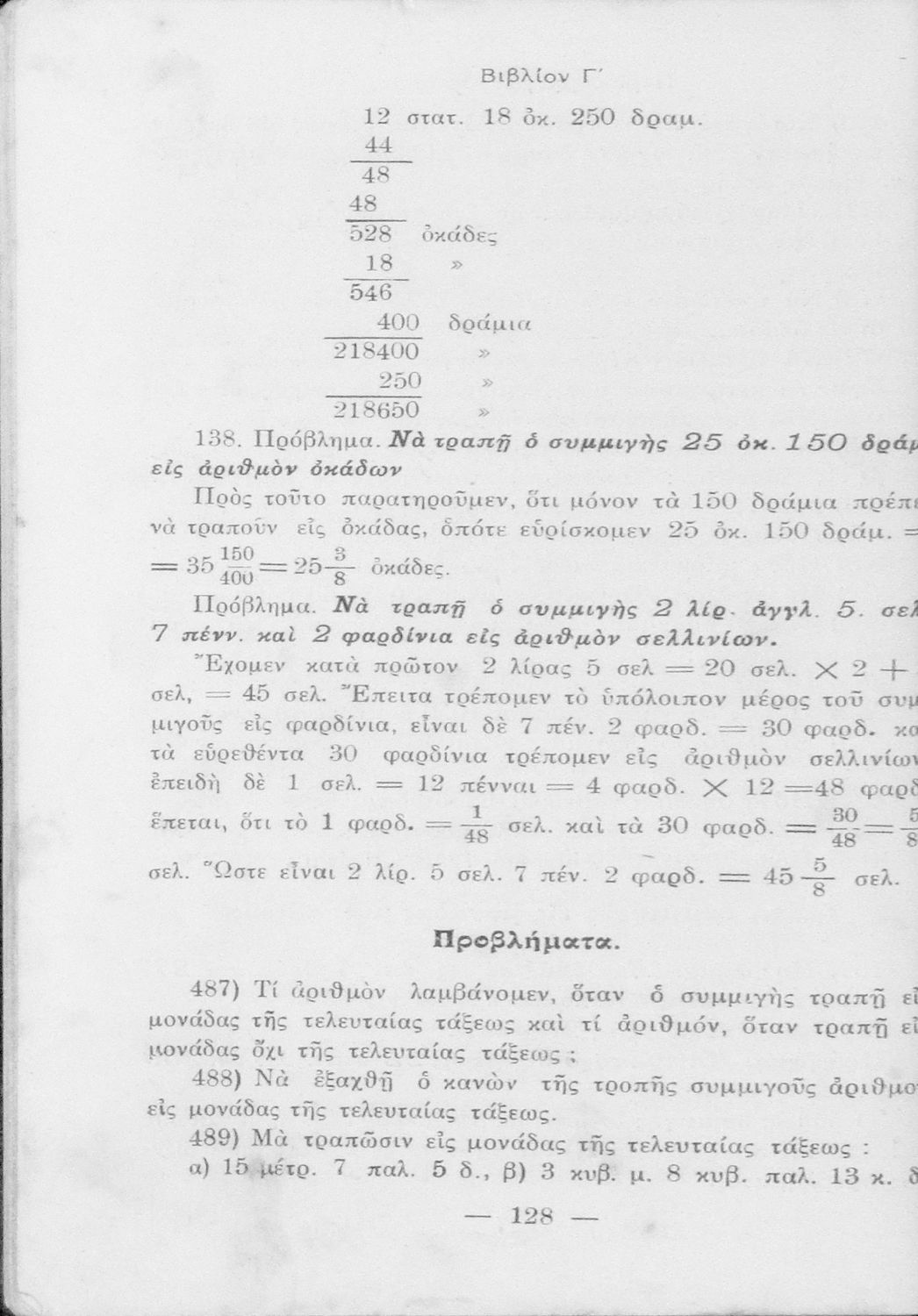 LDR 01449 2200217 4500 035 ## _a01-19728 040 ## _aΙνστιτούτο Εκπαιδευτικής Πολιτικής 041 ## _ael 100 ## _aΙω. Ν. Χατζιδάκις _aΧρ. Α. Μπαρμπαστάθης 110 ## _a19728 245 0# _aΑριθμητική δια την Α΄, Β΄, Γ΄ τάξιν των Εξαταξίων Γυμνασίων 250 ## _a3η Έκδοση 260 ## _aΑθήνα _bΙωάννης Δ. Κολλάρος _c1935 300 ## _a207 _c19 520 ## _aΣχολικό εγχειρίδιο Αριθμητικής για τις Α΄, Β΄ και Γ΄ τάξεις των Εξαταξίων Γυμνασίων που εστιάζει τις αριθμητικές πράξεις, τα κλάσματα, τους δεκαδικούς αριθμούς και είναι χωρισμένο σε θεωρία και ασκήσεις. Περιλαμβάνει και στοιχεία Θεωρητικής Αριθμητικής. 521 ## _aΑ' Γυμνασίου / Β' Γυμνασίου / Γ' Γυμνασίου 522 ## _aΕλλάδα 546 ## _aΔημοτική 563 ## _aΣκληρό Εξώφυλλο 583 ## _a41062/31-7-1933 _c1935 650 #4 _aΑριθμητικές πράξεις _aΔεκαδικοί αριθμοί _aΙδιότητες των ακεραίων αριθμών _aΠρώτοι αριθμοί _aΣυμμιγείς αριθμοί