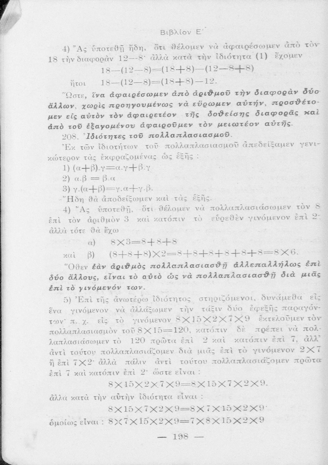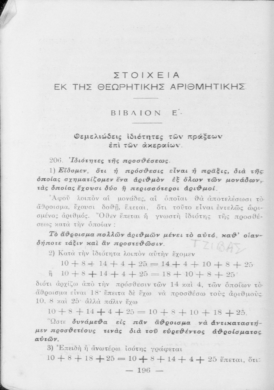 LDR 01449 2200217 4500 035 ## _a01-19728 040 ## _aΙνστιτούτο Εκπαιδευτικής Πολιτικής 041 ## _ael 100 ## _aΙω. Ν. Χατζιδάκις _aΧρ. Α. Μπαρμπαστάθης 110 ## _a19728 245 0# _aΑριθμητική δια την Α΄, Β΄, Γ΄ τάξιν των Εξαταξίων Γυμνασίων 250 ## _a3η Έκδοση 260 ## _aΑθήνα _bΙωάννης Δ. Κολλάρος _c1935 300 ## _a207 _c19 520 ## _aΣχολικό εγχειρίδιο Αριθμητικής για τις Α΄, Β΄ και Γ΄ τάξεις των Εξαταξίων Γυμνασίων που εστιάζει τις αριθμητικές πράξεις, τα κλάσματα, τους δεκαδικούς αριθμούς και είναι χωρισμένο σε θεωρία και ασκήσεις. Περιλαμβάνει και στοιχεία Θεωρητικής Αριθμητικής. 521 ## _aΑ' Γυμνασίου / Β' Γυμνασίου / Γ' Γυμνασίου 522 ## _aΕλλάδα 546 ## _aΔημοτική 563 ## _aΣκληρό Εξώφυλλο 583 ## _a41062/31-7-1933 _c1935 650 #4 _aΑριθμητικές πράξεις _aΔεκαδικοί αριθμοί _aΙδιότητες των ακεραίων αριθμών _aΠρώτοι αριθμοί _aΣυμμιγείς αριθμοί