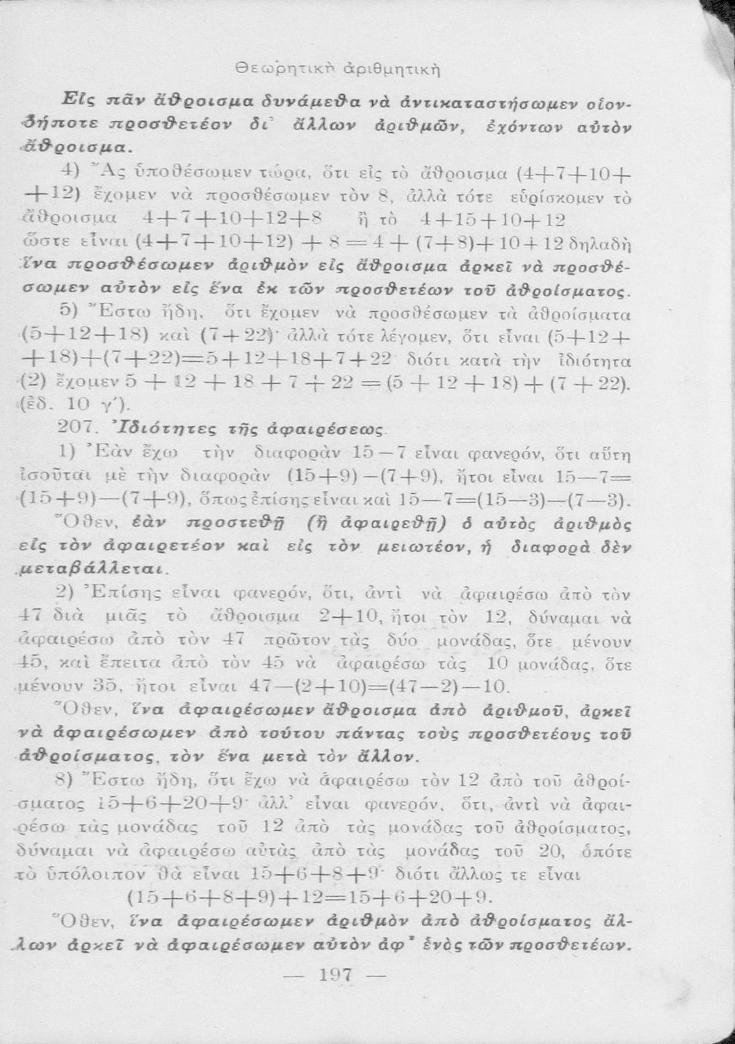 Σχολικό εγχειρίδιο Αριθμητικής για τις Α΄, Β΄ και Γ΄ τάξεις των Εξαταξίων Γυμνασίων που εστιάζει τις αριθμητικές πράξεις, τα κλάσματα, τους δεκαδικούς αριθμούς και είναι χωρισμένο σε θεωρία και ασκήσεις. Περιλαμβάνει και στοιχεία Θεωρητικής Αριθμητικής.