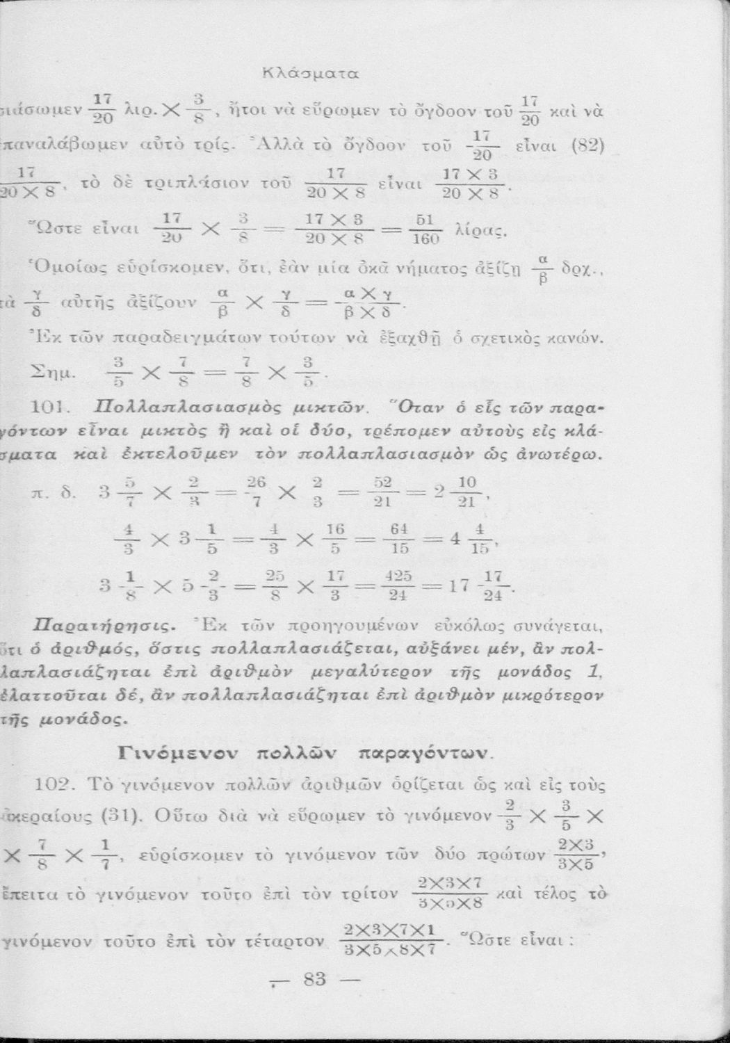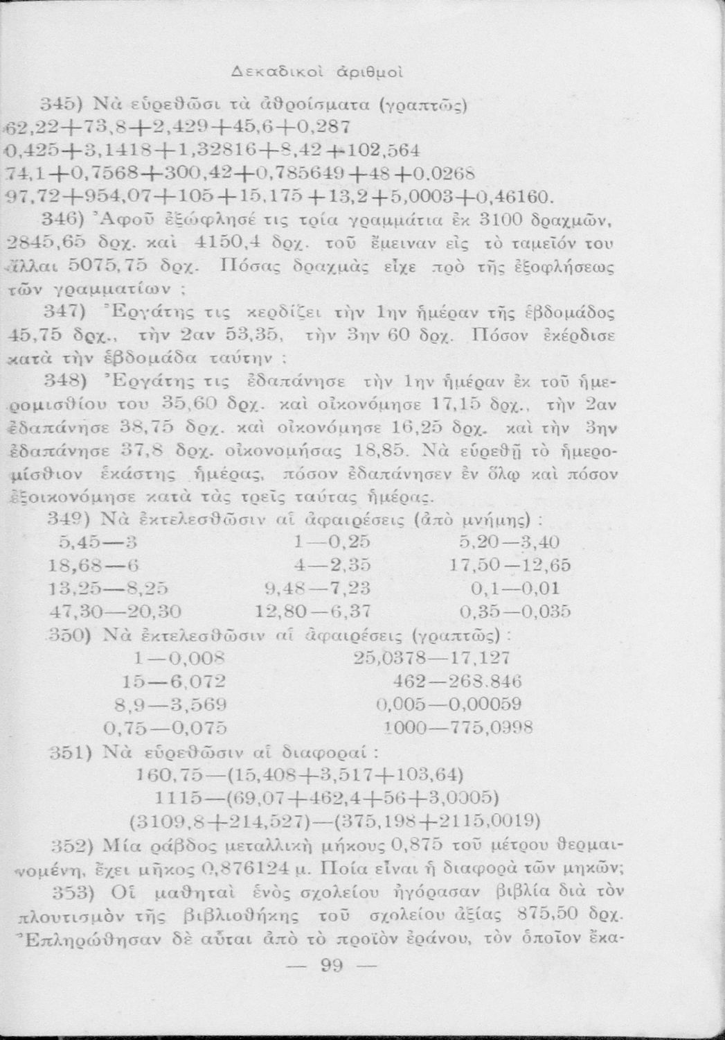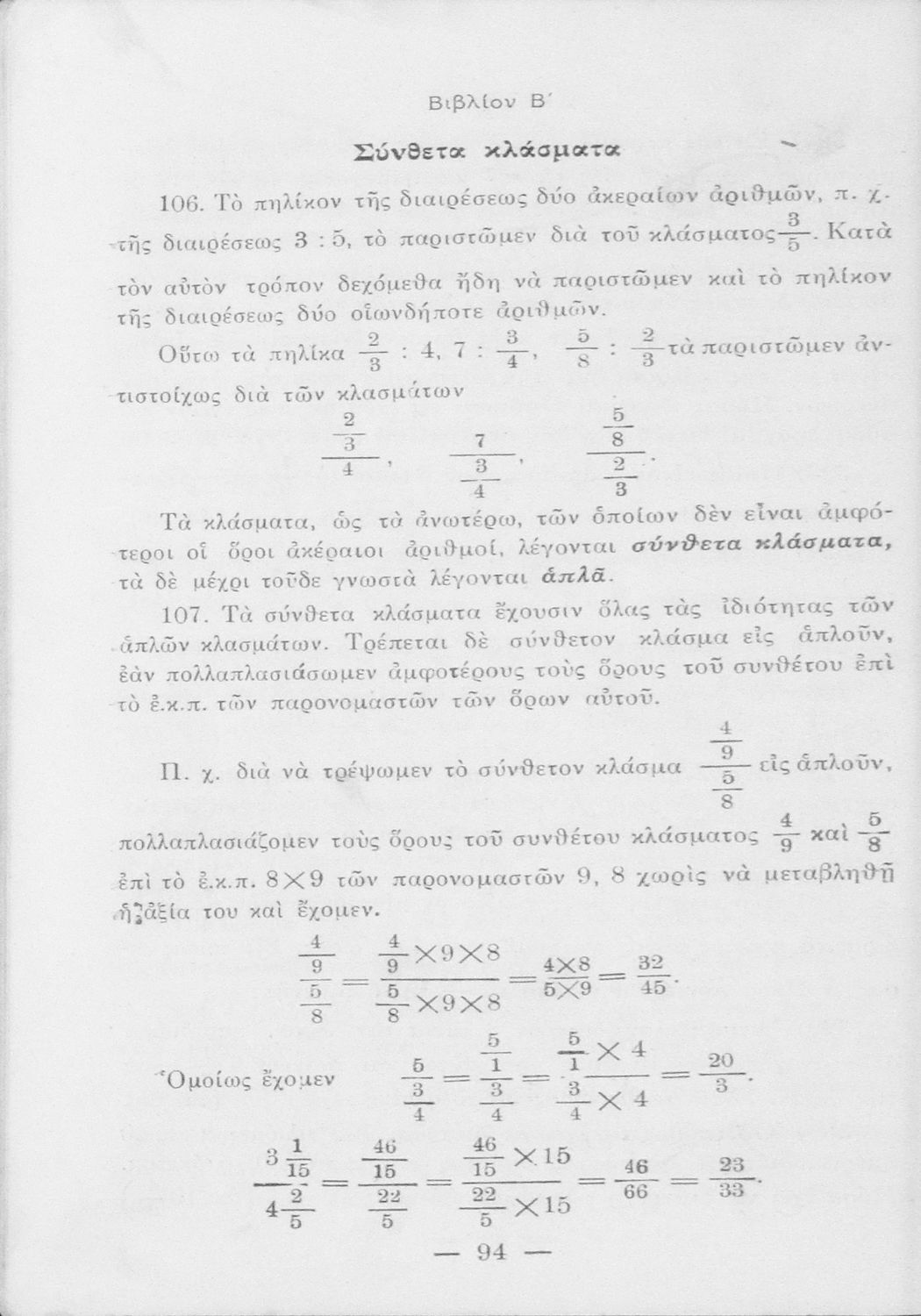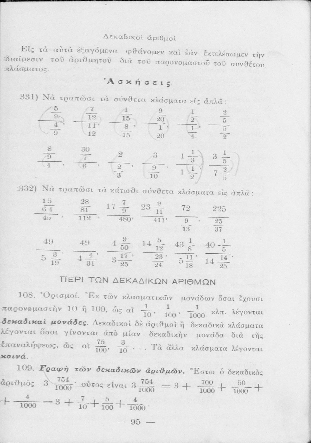 Σχολικό εγχειρίδιο Αριθμητικής για τις Α΄, Β΄ και Γ΄ τάξεις των Εξαταξίων Γυμνασίων που εστιάζει τις αριθμητικές πράξεις, τα κλάσματα, τους δεκαδικούς αριθμούς και είναι χωρισμένο σε θεωρία και ασκήσεις. Περιλαμβάνει και στοιχεία Θεωρητικής Αριθμητικής.