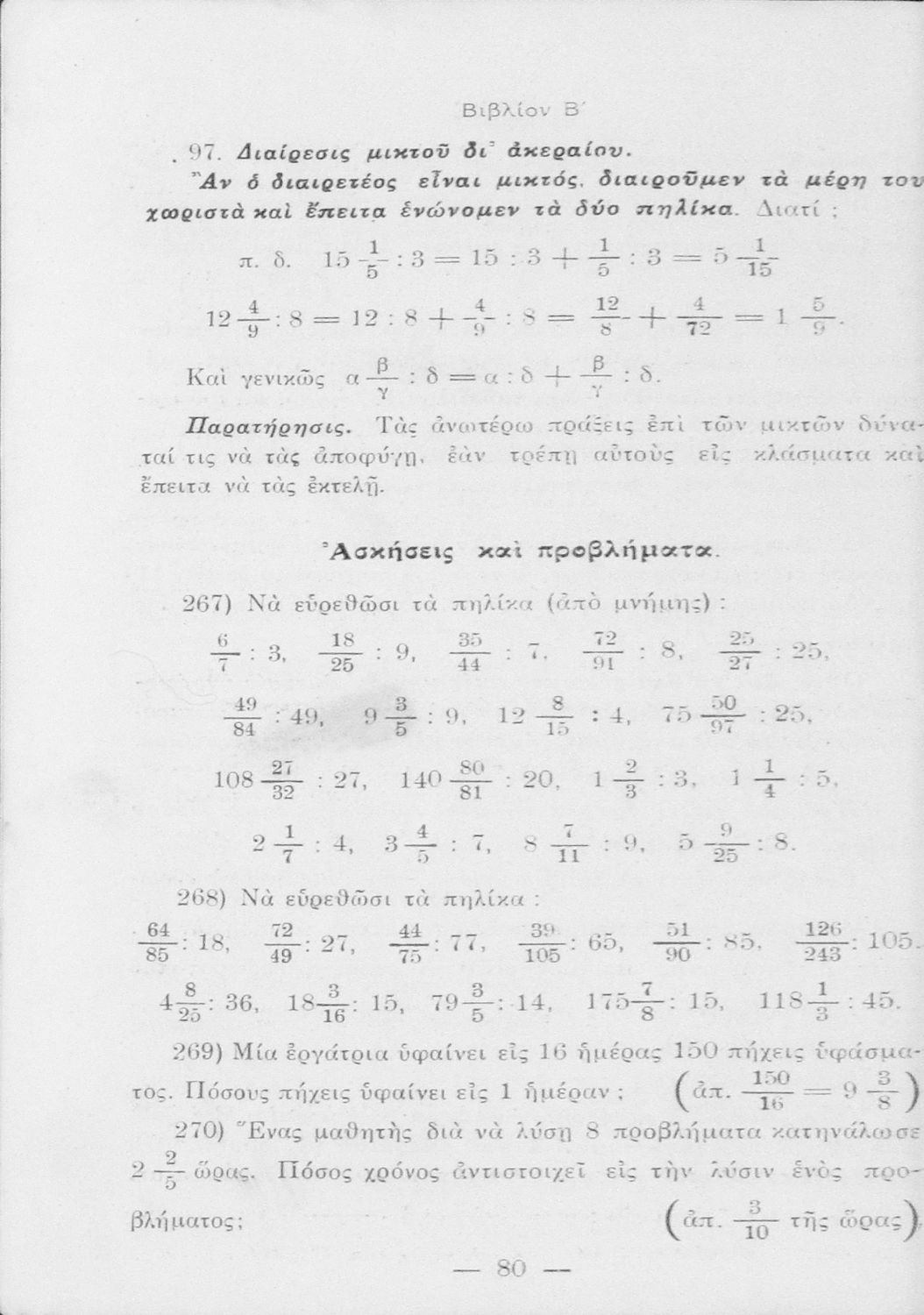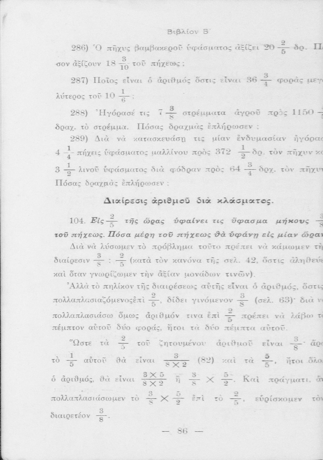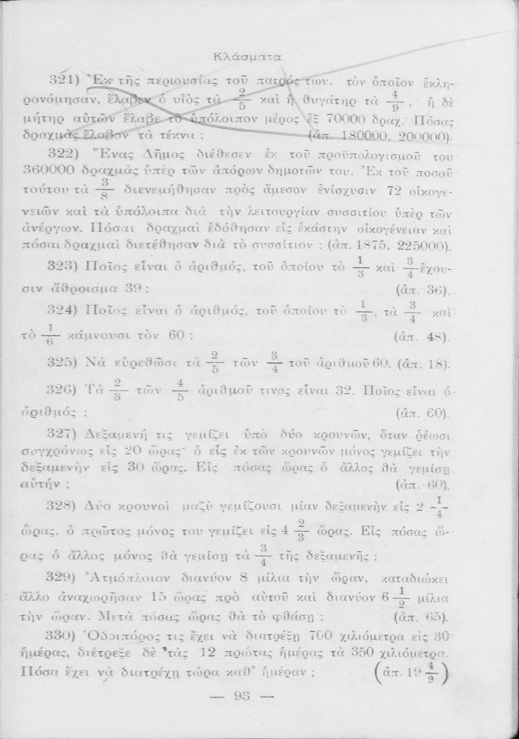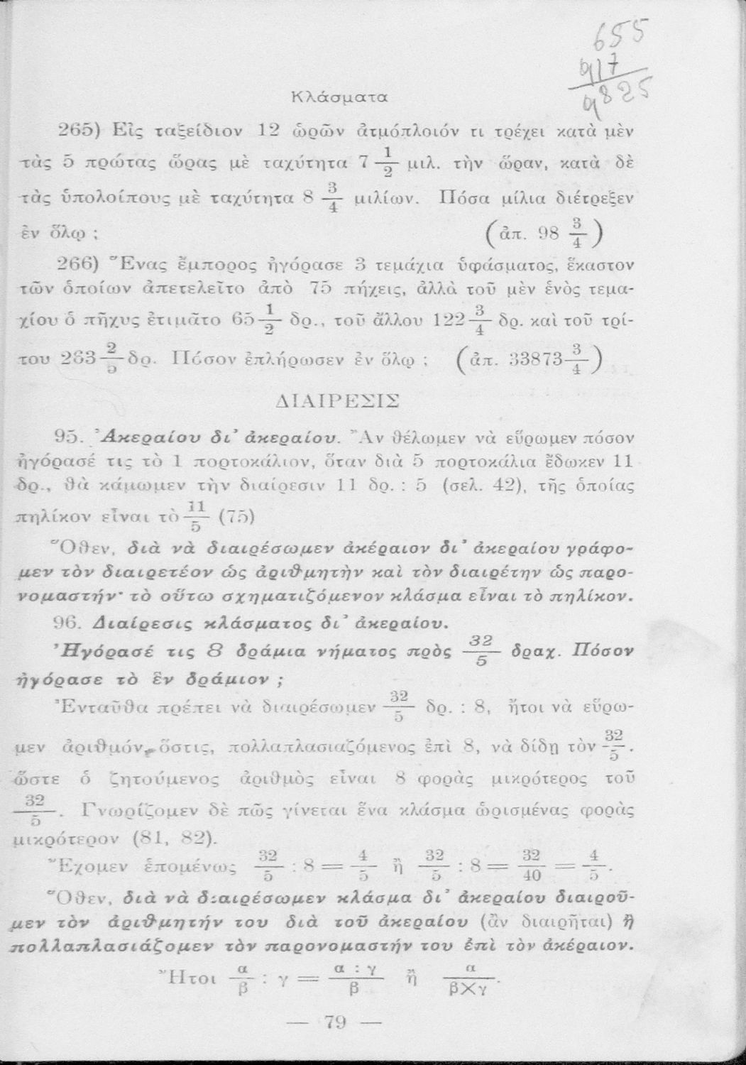 Σχολικό εγχειρίδιο Αριθμητικής για τις Α΄, Β΄ και Γ΄ τάξεις των Εξαταξίων Γυμνασίων που εστιάζει τις αριθμητικές πράξεις, τα κλάσματα, τους δεκαδικούς αριθμούς και είναι χωρισμένο σε θεωρία και ασκήσεις. Περιλαμβάνει και στοιχεία Θεωρητικής Αριθμητικής.
