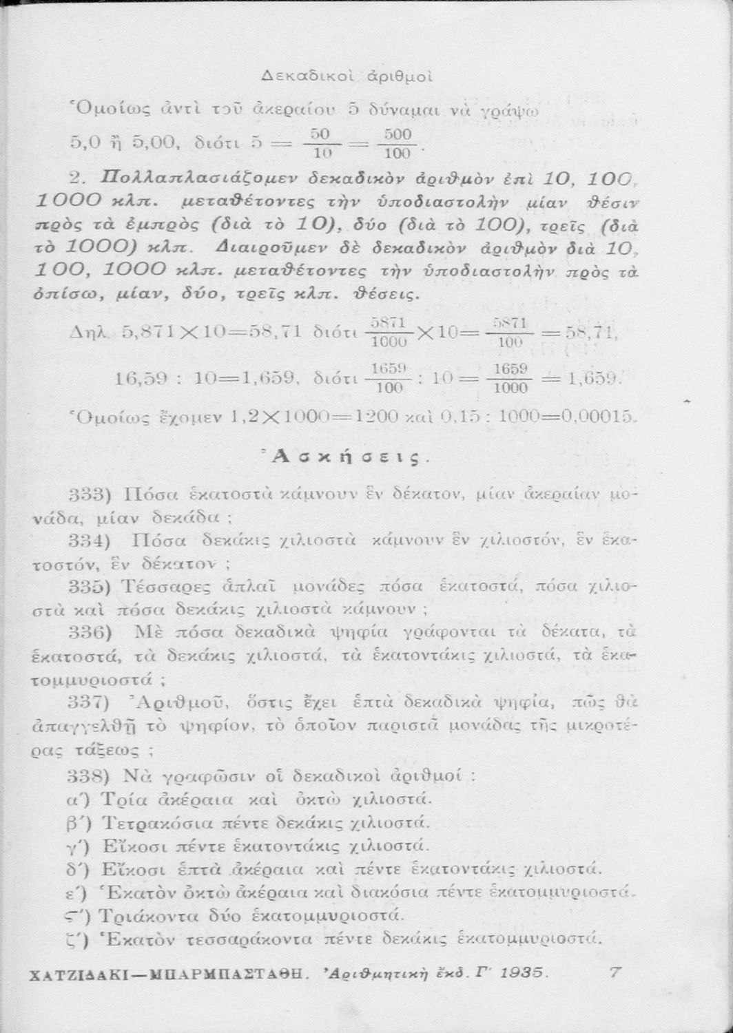 Αριθμητική δια την Α΄, Β΄, Γ΄ τάξιν των Εξαταξίων Γυμνασίων