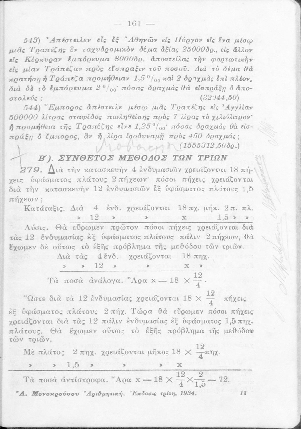 Παιδαγωγικό βοήθημα για τους Δημοδιδασκάλους, τους υποψηφίους των Σχολών Ανωτάτης Εμπορικής και τους μαθητές Πρακτικών Λυκείων των Γυμνασίων που περιέχει ασκήσεις ανώτερης αριθμητικής.