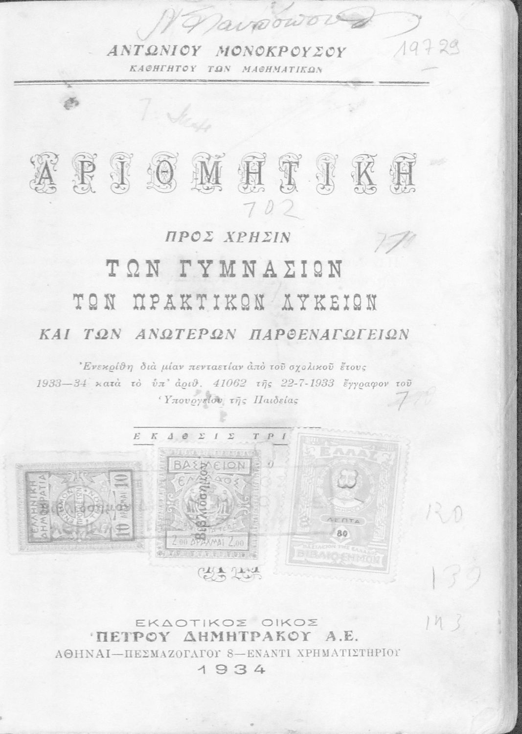 Εκδότης: Πέτρος Δημητράκος Έτος έκδοσης: 1934 Τόπος έκδοσης: Αθήνα Έκδοση: 3η Υπουργική απόφαση / Σύμβαση: 41062/22-7-1933 Έτος έγκρισης: 1933 |