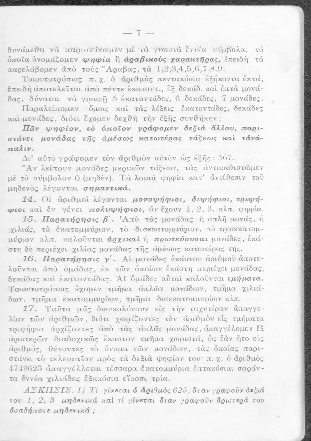 LDR 01452 2200217 4500 035 ## _a01-19729 040 ## _aΙνστιτούτο Εκπαιδευτικής Πολιτικής 041 ## _ael 100 ## _aΑντώνιος Μονοκρούσος 110 ## _a19729 245 0# _aΑριθμητική προς χρήσιν των Γυμνασίων των Πρακτικών Λυκείων και των Ανωτέρων Παρθεναγωγείων 250 ## _a3η Έκδοση 260 ## _aΑθήνα _bΠέτρος Δημητράκος _c1934 300 ## _a206 _c20 520 ## _aΣχολικό εγχειρίδιο Αριθμητικής για τα Γυμνάσια, τα Πρακτικά Λύκεια και τα Ανώτερα Παρθεναγωγεία που εστιάζει στις αριθμητικές πράξεις με κλάσματα και ακέραιους και συμμιγείς αριθμούς και περιέχει θεωρία και ασκήσεις με επιχειρηματικό προσανατολισμό. 521 ## _aΓυμνάσιο / Πρακτικό Λύκειο / Ανώτερα Παρθεναγωγεία 522 ## _aΕλλάδα 546 ## _aΑπλή καθαρεύουσα 563 ## _aΣκληρό Εξώφυλλο 583 ## _a41062/22-7-1933 _c1933 650 #4 _aΑριθμητικές πράξεις _aΚλασματικοί και συμμιγείς αριθμοί _aΤετραγωνική ρίζα