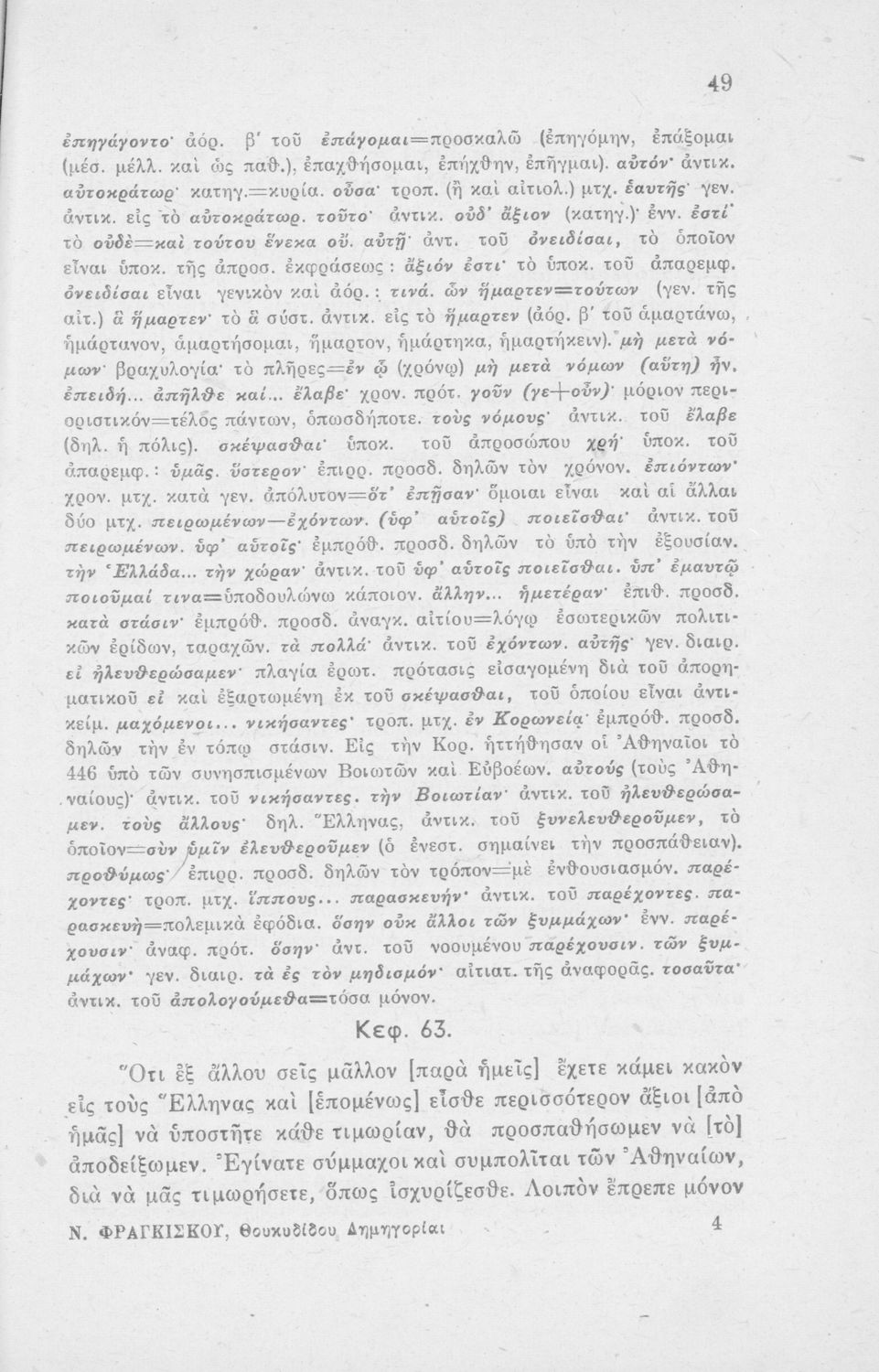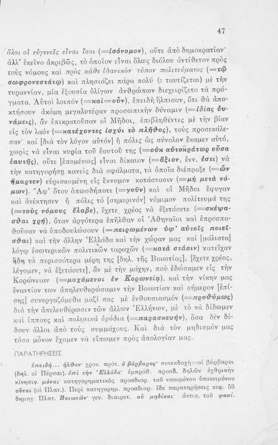 Μαθητικό βοήθημα Αρχαίων Ελληνικών Ζ' Γυμνασίου που περιέχει αποσπάσματα από το έργο του Θουκυδίδη Ιστορία, ερμηνευτικά και πραγματολογικά σχόλια