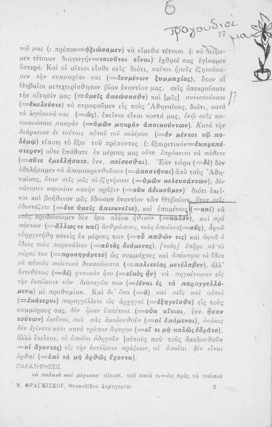 Μαθητικό βοήθημα Αρχαίων Ελληνικών Ζ' Γυμνασίου που περιέχει αποσπάσματα από το έργο του Θουκυδίδη Ιστορία, ερμηνευτικά και πραγματολογικά σχόλια