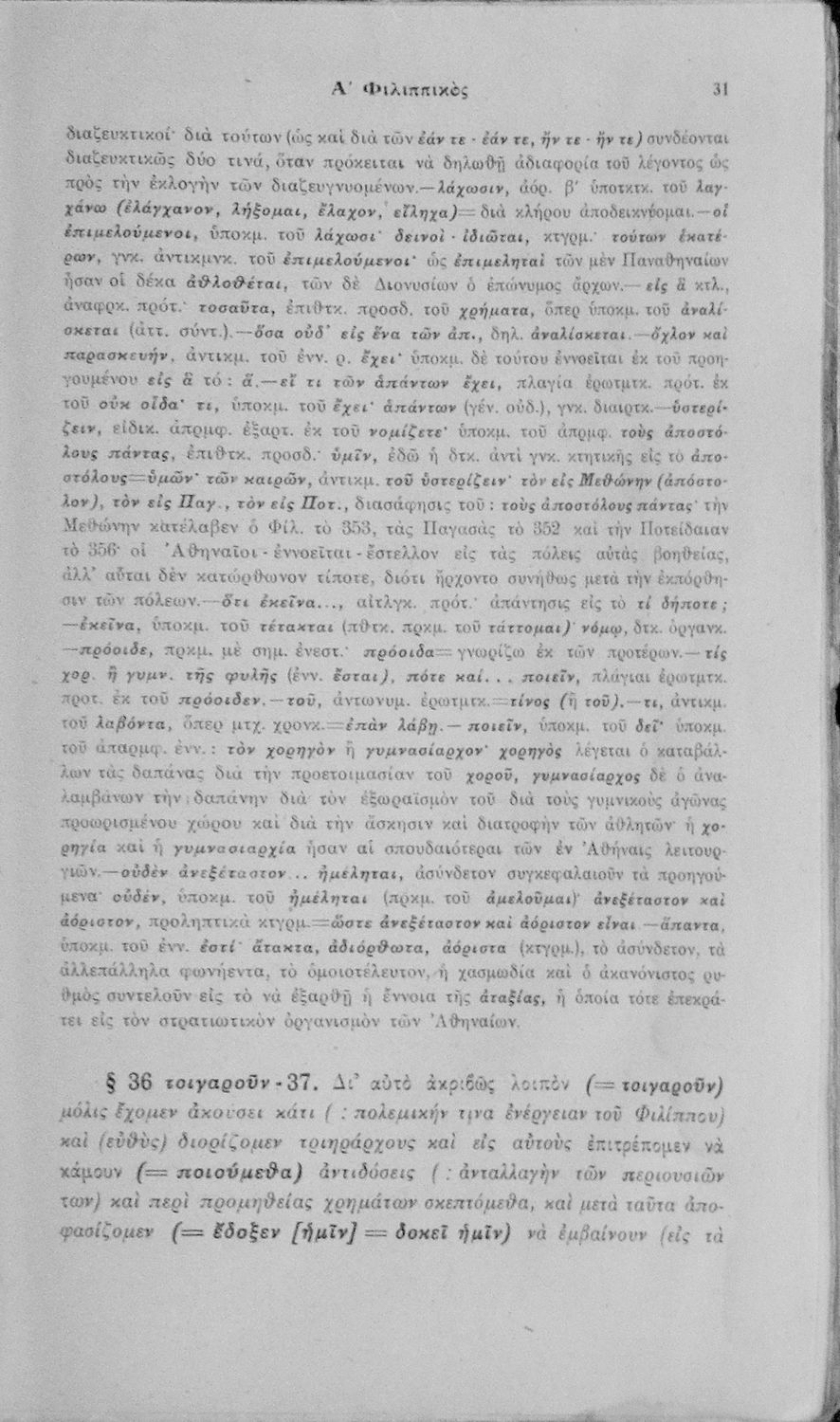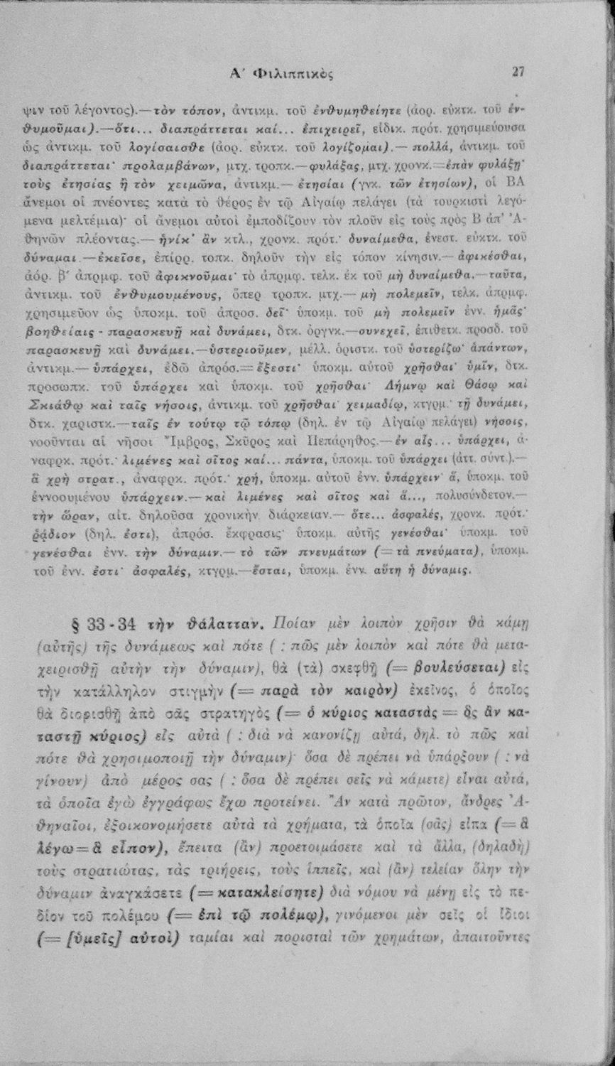Μαθητικό βοήθημα Αρχαίων Ελληνικών ΣΤ΄ Οκταταξίου Γυμνασίου που περιέχει τον Α΄ Φιλιππικό του Δημοσθένη, μετάφραση, γραμματικά και συντακτικά σχόλια.