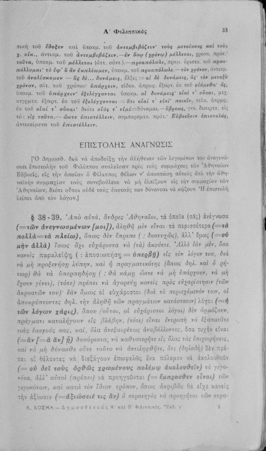 Δημοσθένους Α΄ και Β΄ Φιλιππικός Σχολική μετάφραση με παρατηρήσεις. Δια την Ε΄ Τάξιν των Γυμνασίων