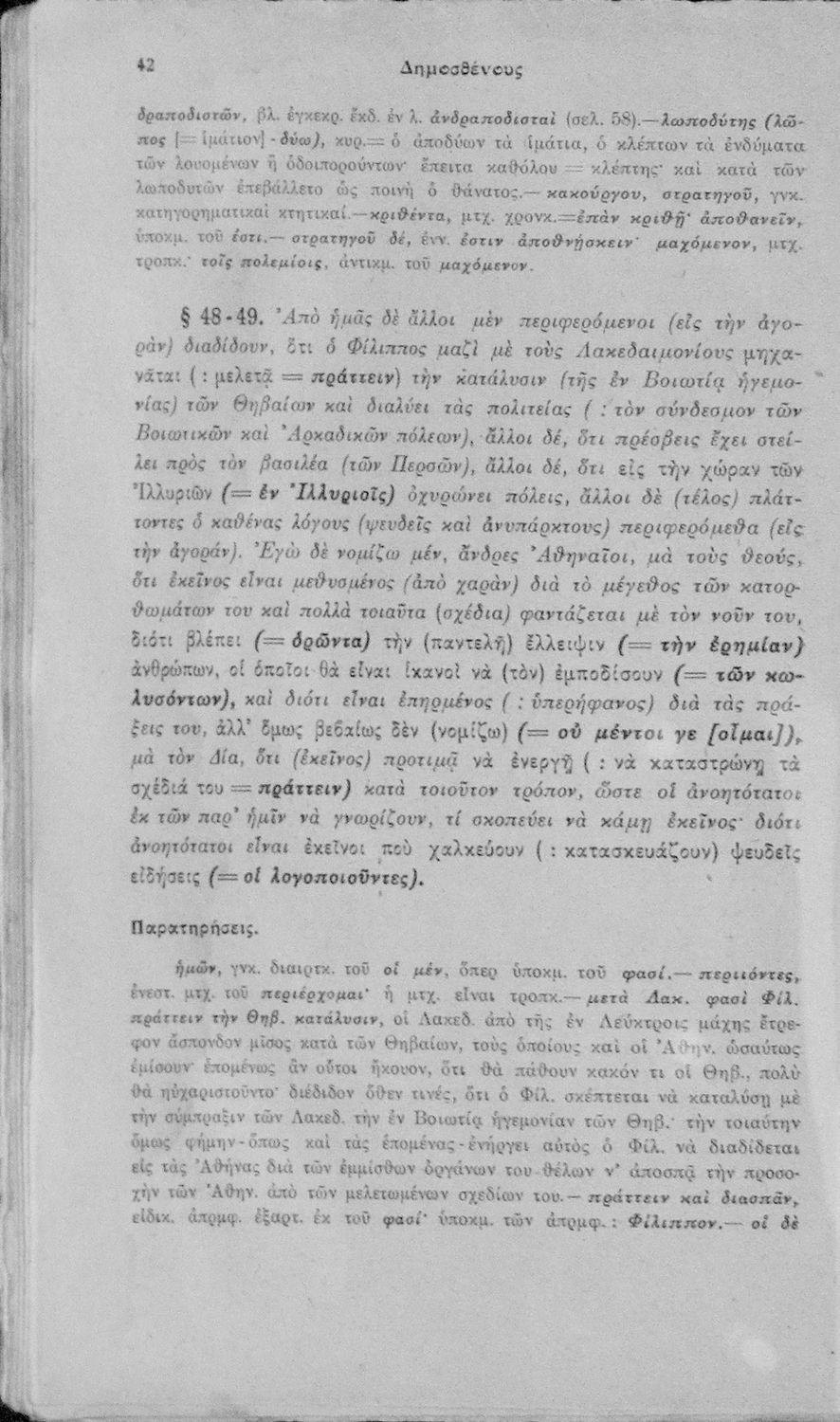 Μαθητικό βοήθημα Αρχαίων Ελληνικών Ε΄ Γυμνασίου που περιέχει τους Λόγους του Δημοσθένη Α΄ και Β΄ Φιλιππικός, μετάφραση, και ερμηνευτικά, γραμματικά και πραγματολογικά σχόλια.