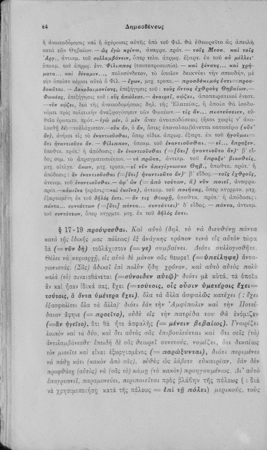 Μαθητικό βοήθημα Αρχαίων Ελληνικών ΣΤ΄ Οκταταξίου Γυμνασίου που περιέχει τον Α΄ Φιλιππικό του Δημοσθένη, μετάφραση, γραμματικά και συντακτικά σχόλια.