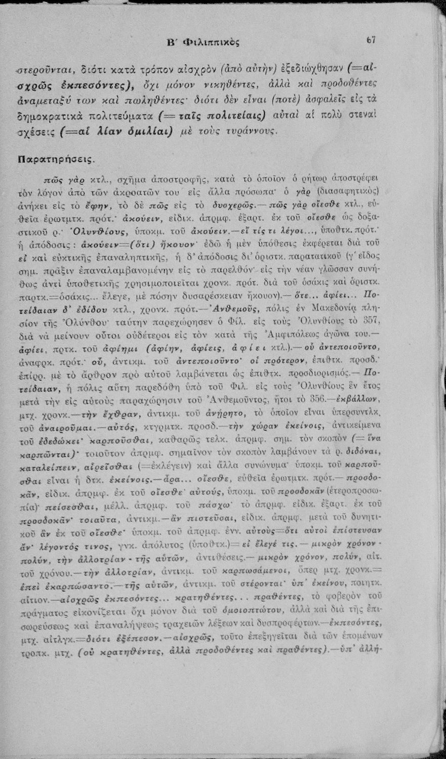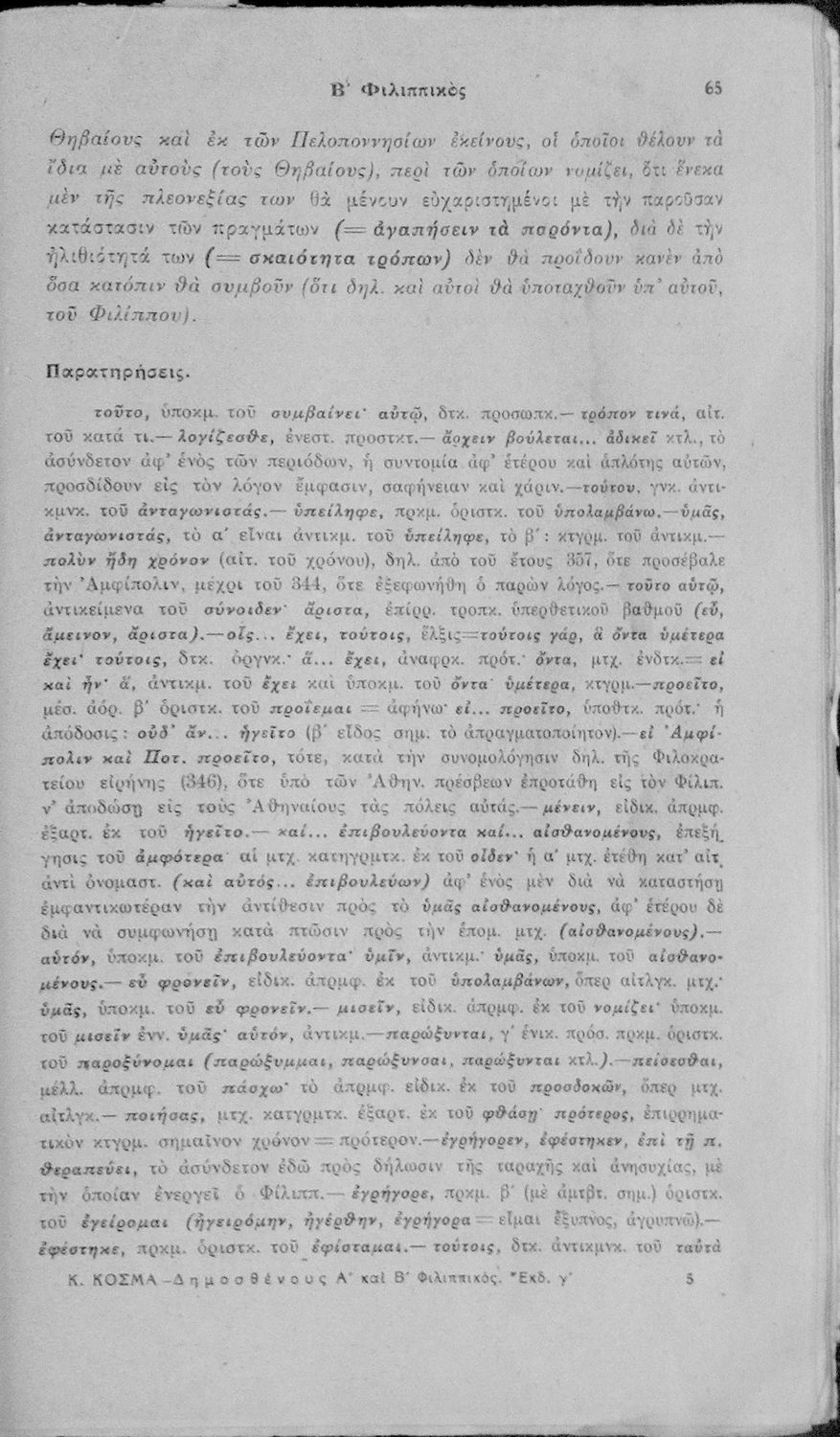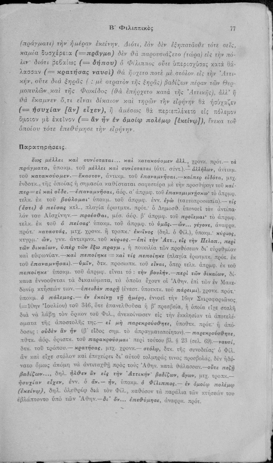 Δημοσθένους Α΄ και Β΄ Φιλιππικός Σχολική μετάφραση με παρατηρήσεις. Δια την Ε΄ Τάξιν των Γυμνασίων