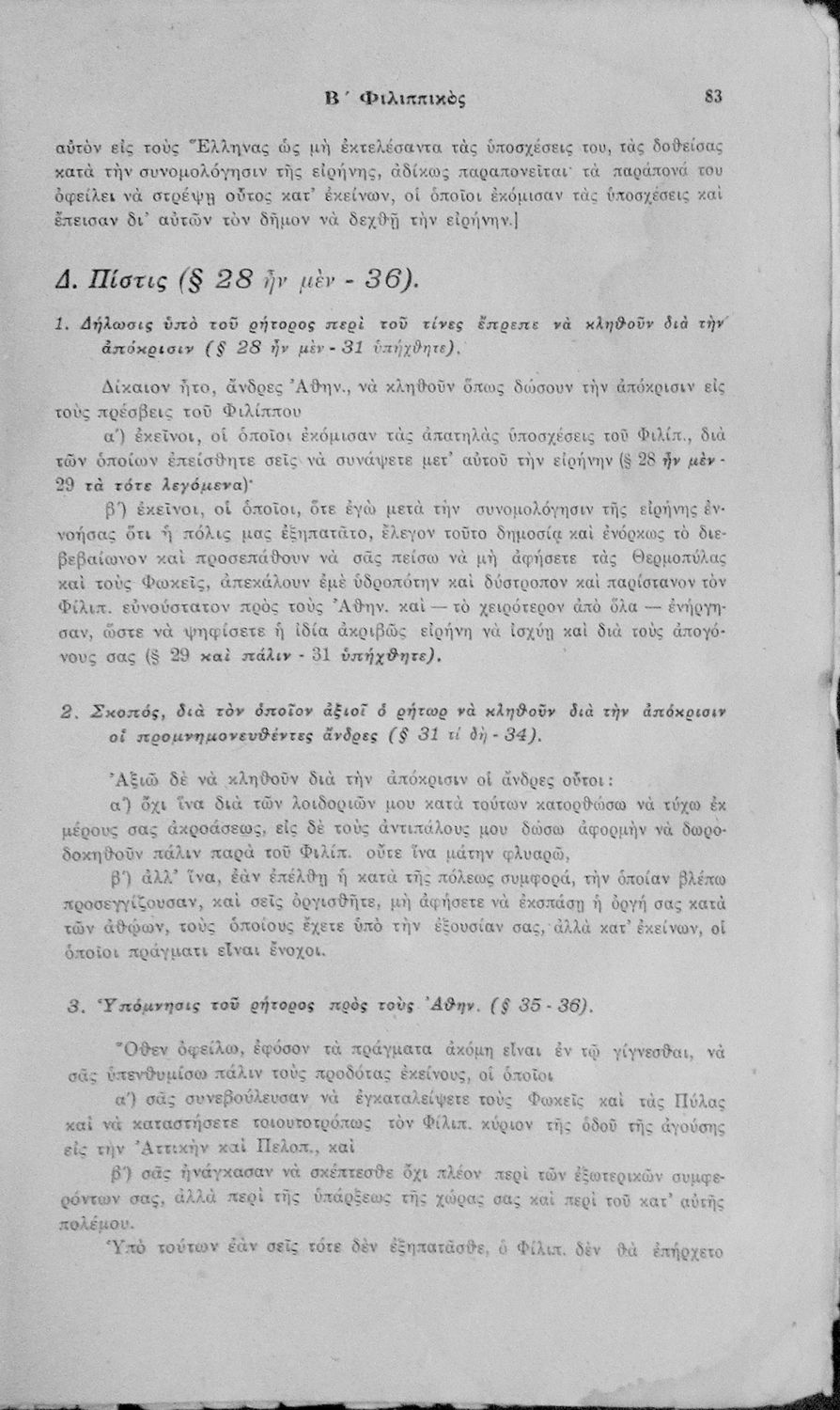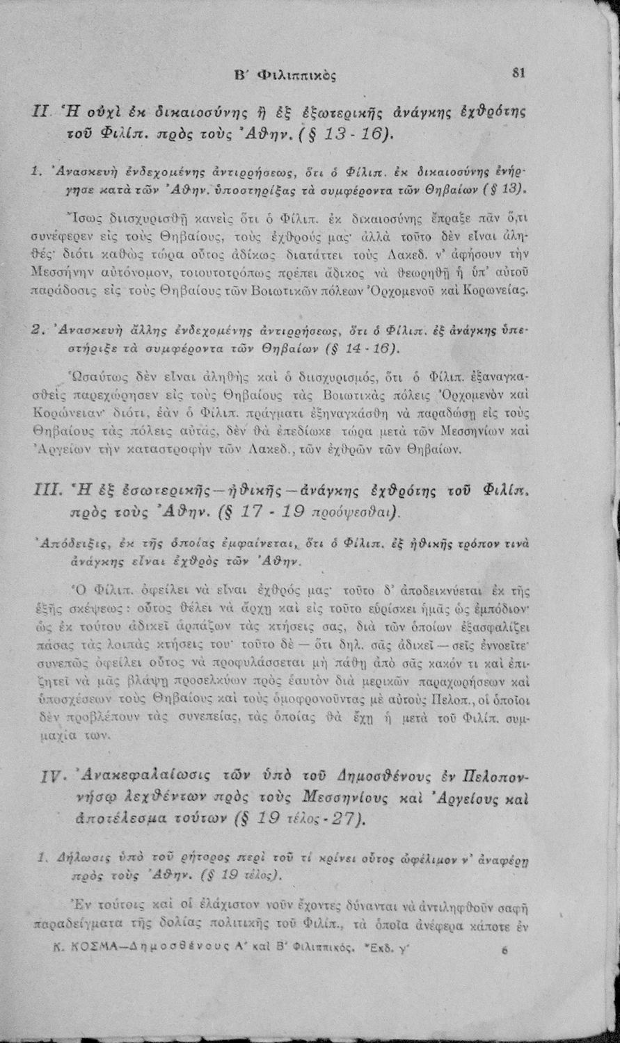 Μαθητικό βοήθημα Αρχαίων Ελληνικών Ε΄ Γυμνασίου που περιέχει τους Λόγους του Δημοσθένη Α΄ και Β΄ Φιλιππικός, μετάφραση, και ερμηνευτικά, γραμματικά και πραγματολογικά σχόλια.
