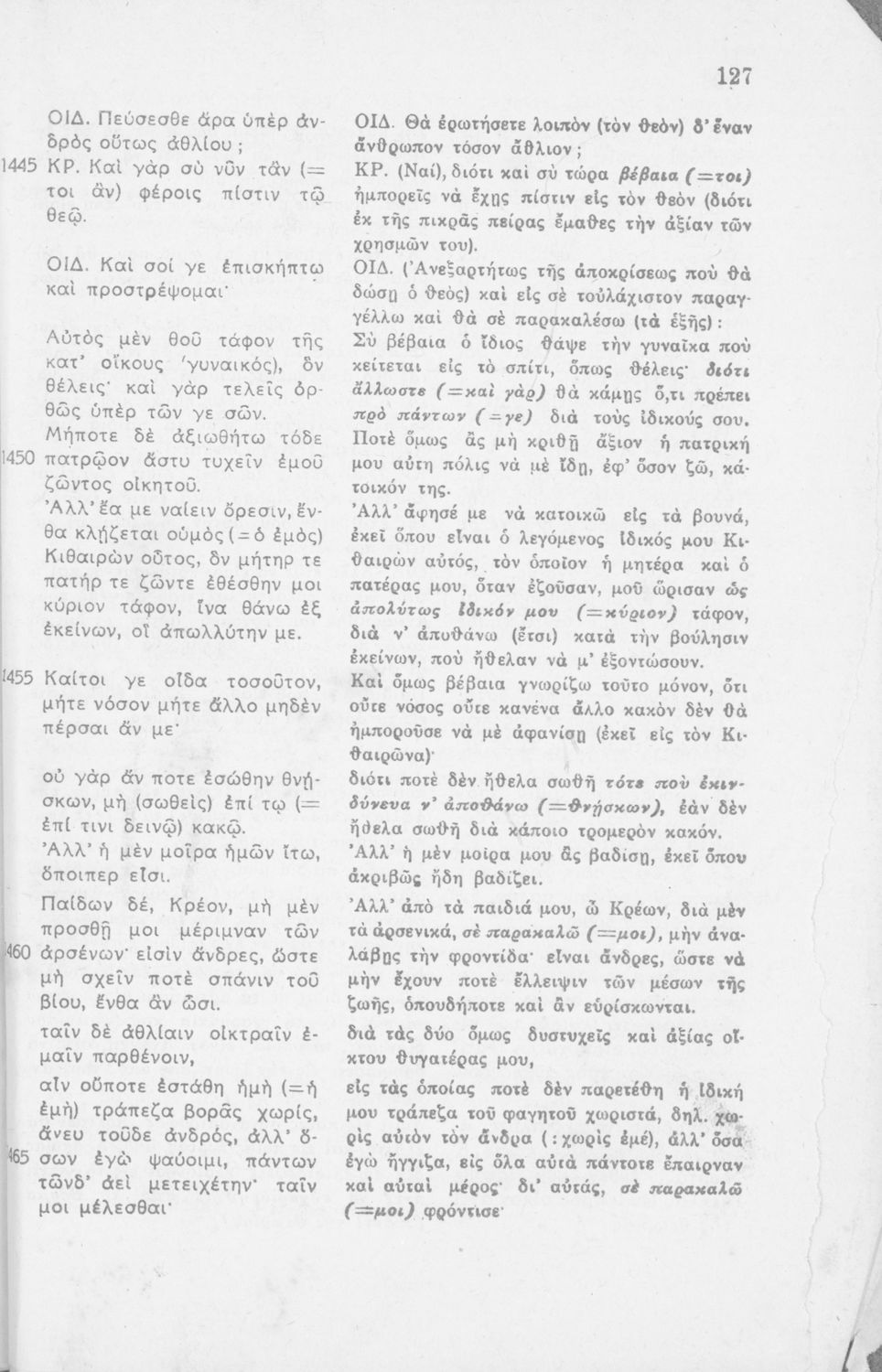 Σχολικό εγχειρίδιο Αρχαίων Ελληνικών που περιλαμβάνει τις τραγωδίες του Σοφοκλή Οιδίπους Τύραννος και Αντιγόνη, εισαγωγή και ερμηνευτικά σχόλια.
