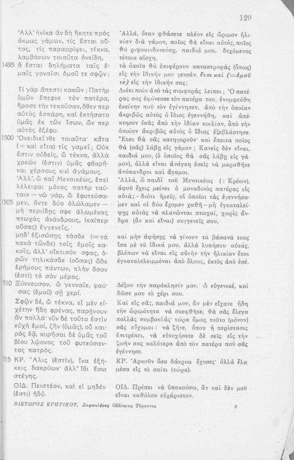 Σοφοκλής, Βίκτωρ Κρητικός (μετάφραση, σχόλια)