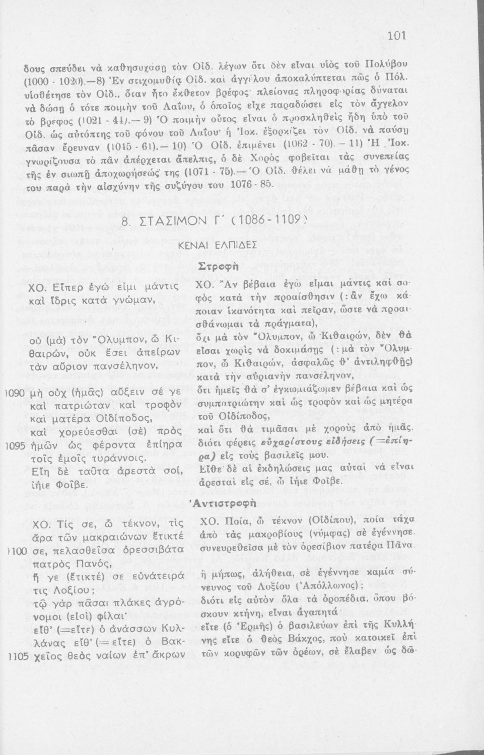 Σχολικό εγχειρίδιο Αρχαίων Ελληνικών που περιλαμβάνει τις τραγωδίες του Σοφοκλή Οιδίπους Τύραννος και Αντιγόνη, εισαγωγή και ερμηνευτικά σχόλια.