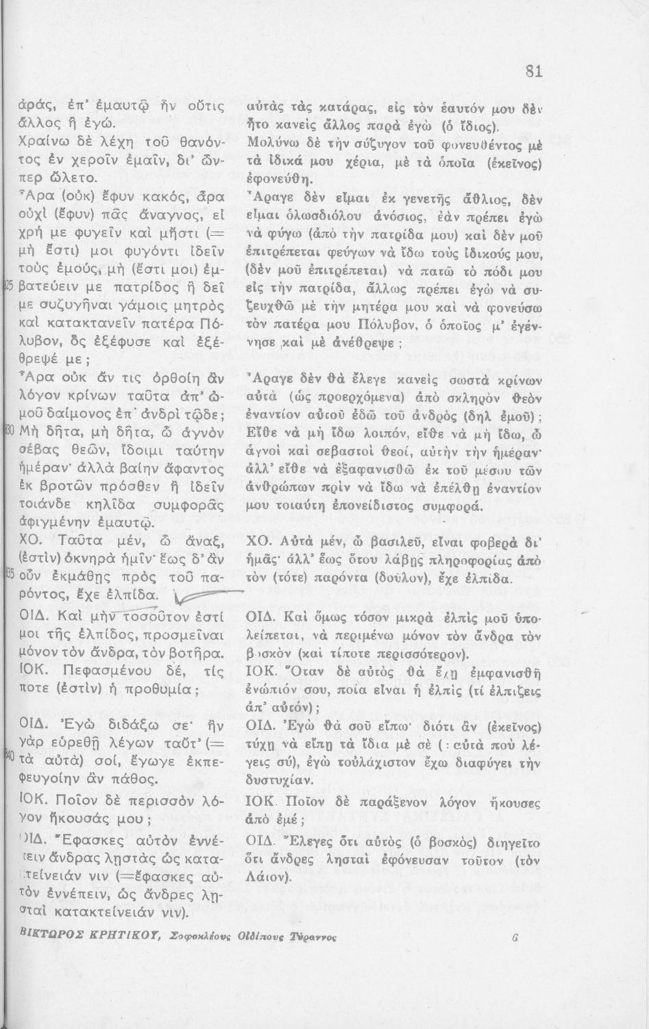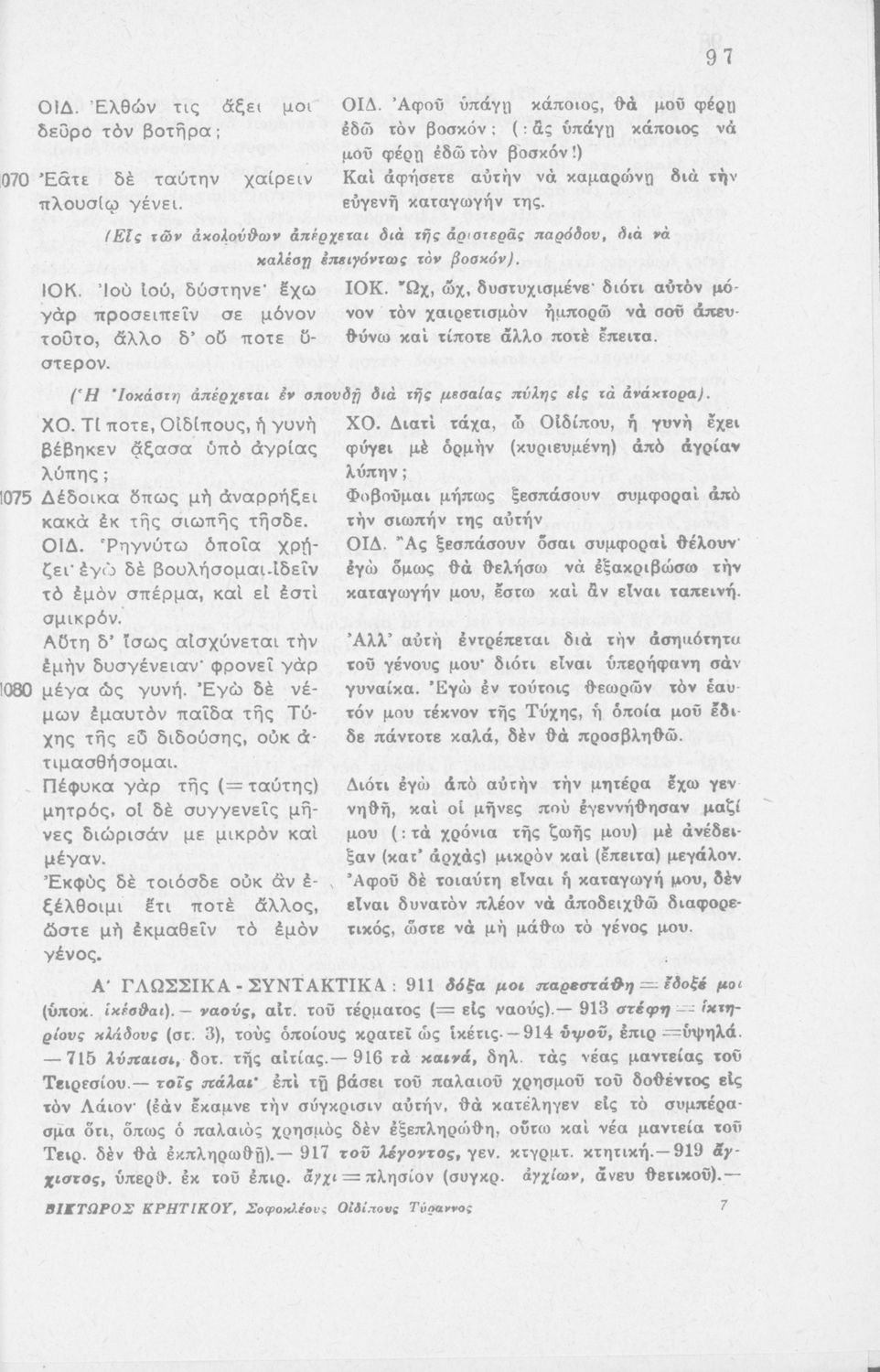 Σοφοκλής, Βίκτωρ Κρητικός (μετάφραση, σχόλια)