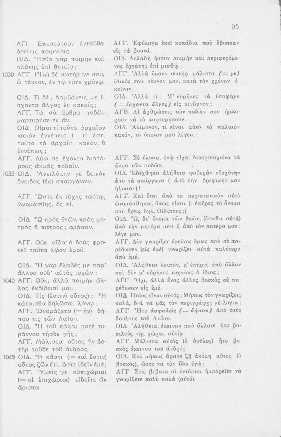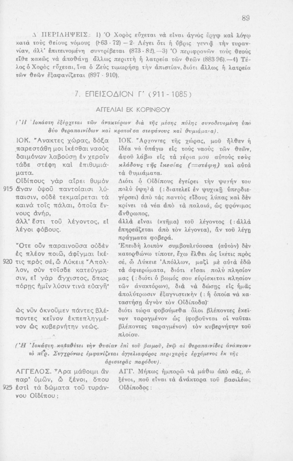 Σχολικό εγχειρίδιο του Γυμνασίου για το μάθημα των Αρχαίων Ελληνικών που περιέχει την τραγωδία του Σοφοκλή Οιδίπους Τύραννος, ερμηνευτικά και πραγματολογικά σχόλια και λεξιλογικές παρατηρήσεις.