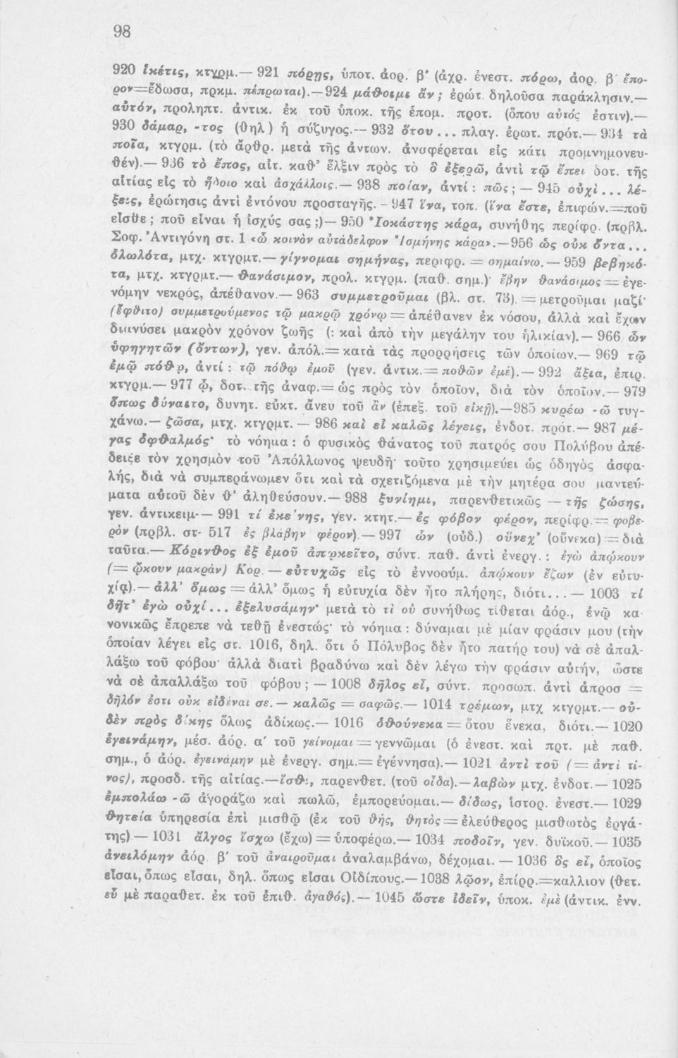 Σοφοκλής, Π.Ν Δημόπουλος (σχόλια)