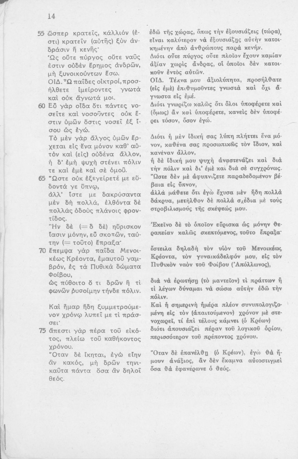 Σχολικό εγχειρίδιο για το μάθημα των Αρχαίων Ελληνικών στο Γυμνάσιο. Περιέχει κείμενο, ερμηνευτικά και πραγματολογικά σχόλια και λεξιλογικές παρατηρήσεις.
