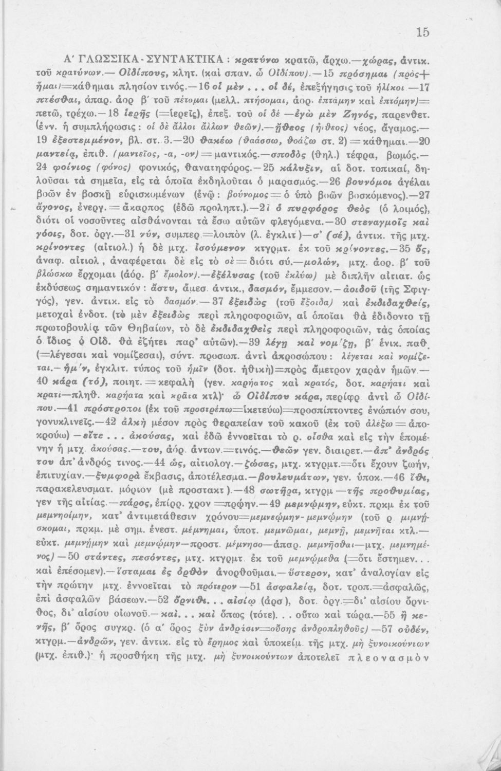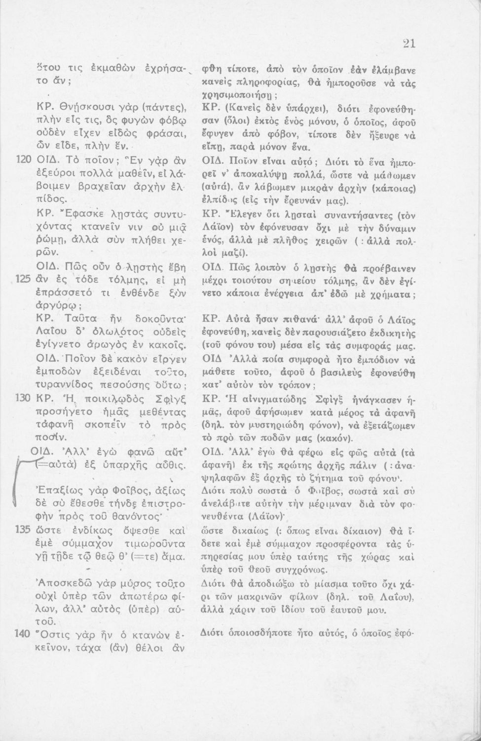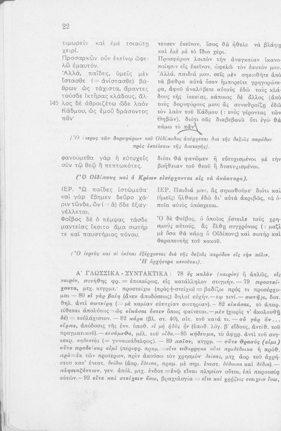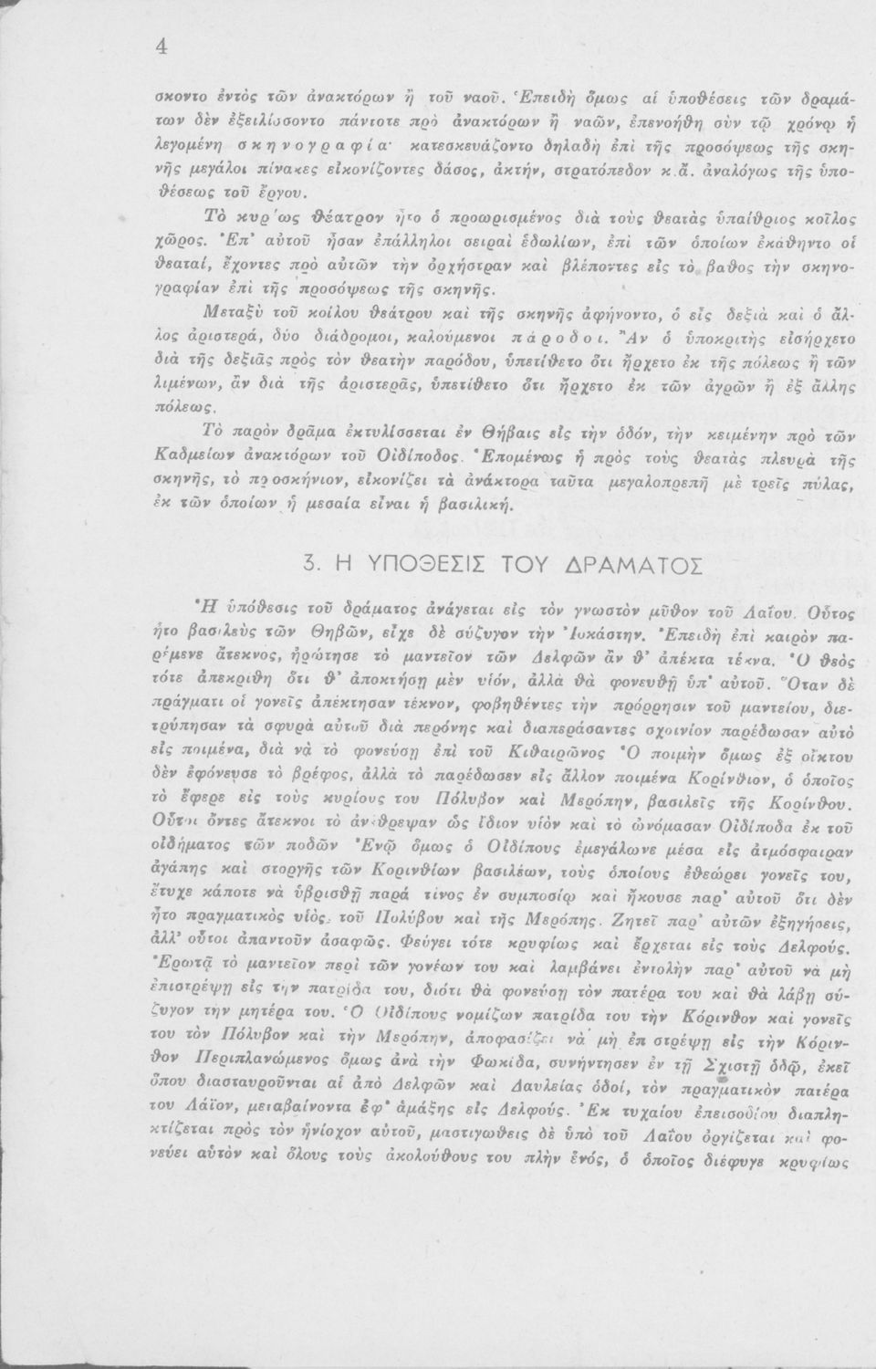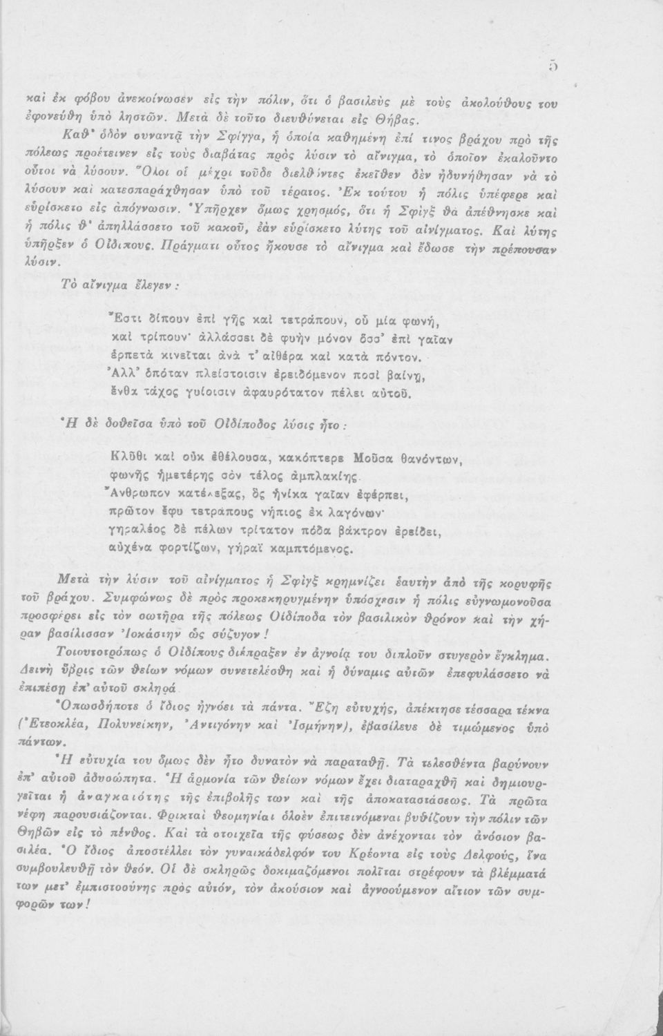Σχολικό εγχειρίδιο του Γυμνασίου για το μάθημα των Αρχαίων Ελληνικών που περιέχει την τραγωδία του Σοφοκλή Οιδίπους Τύραννος, ερμηνευτικά και πραγματολογικά σχόλια και λεξιλογικές παρατηρήσεις.