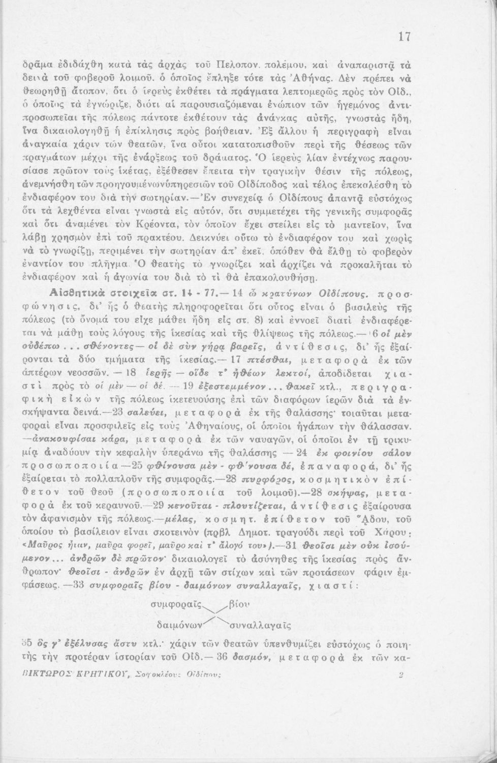 Σοφοκλής, Βίκτωρ Κρητικός (μετάφραση, σχόλια)