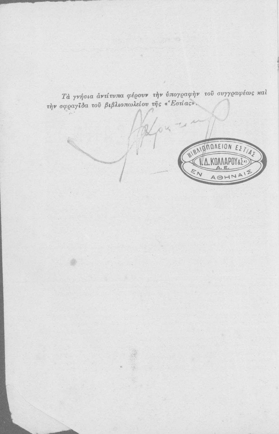 Εκδότης: Ιωάννης Δ. Κολλάρος και ΣΙΑ, Βιβλιοπωλείο της "Εστίας"