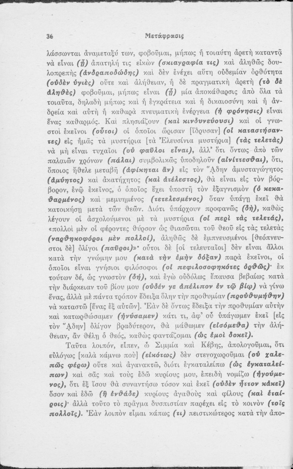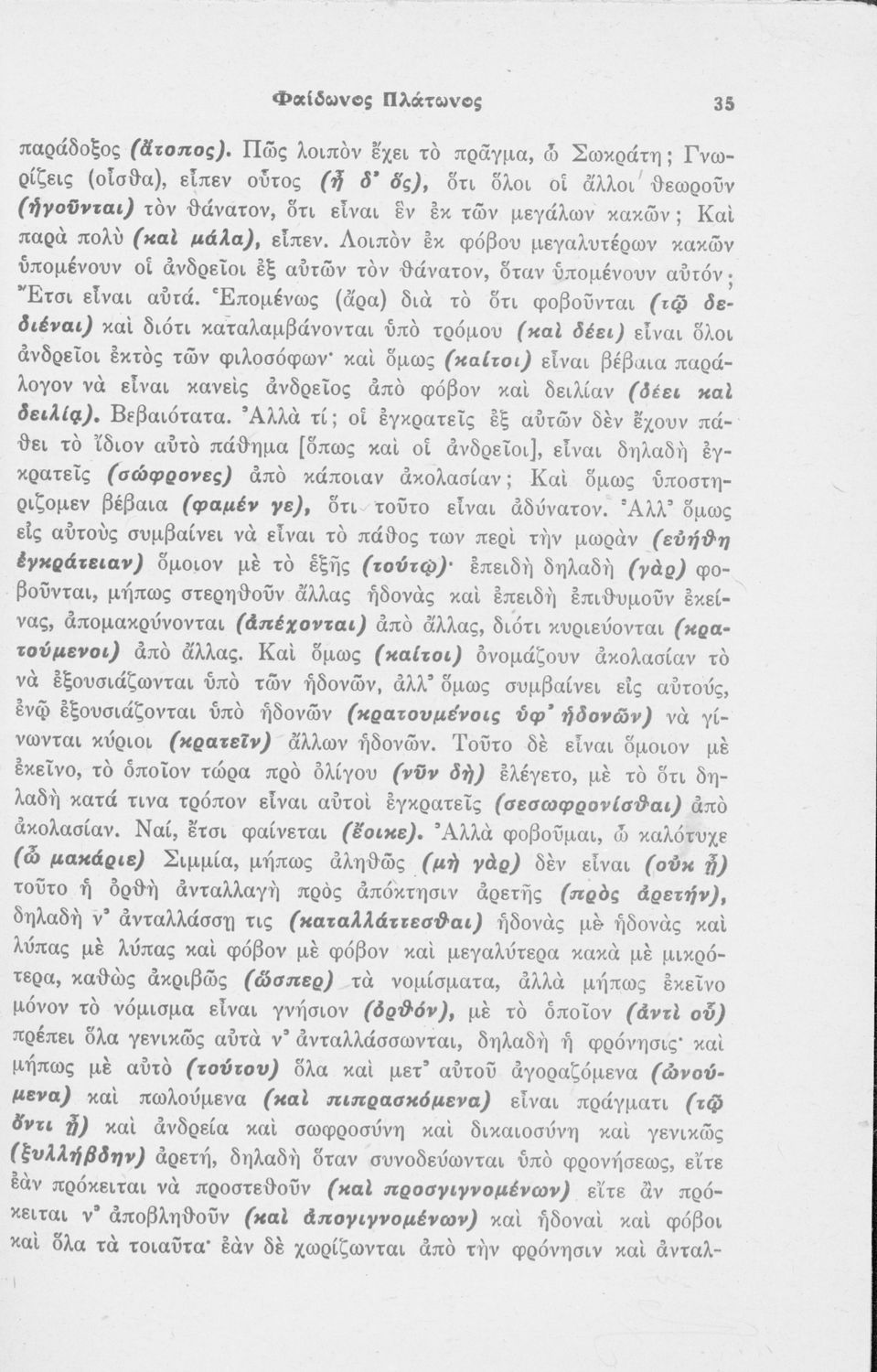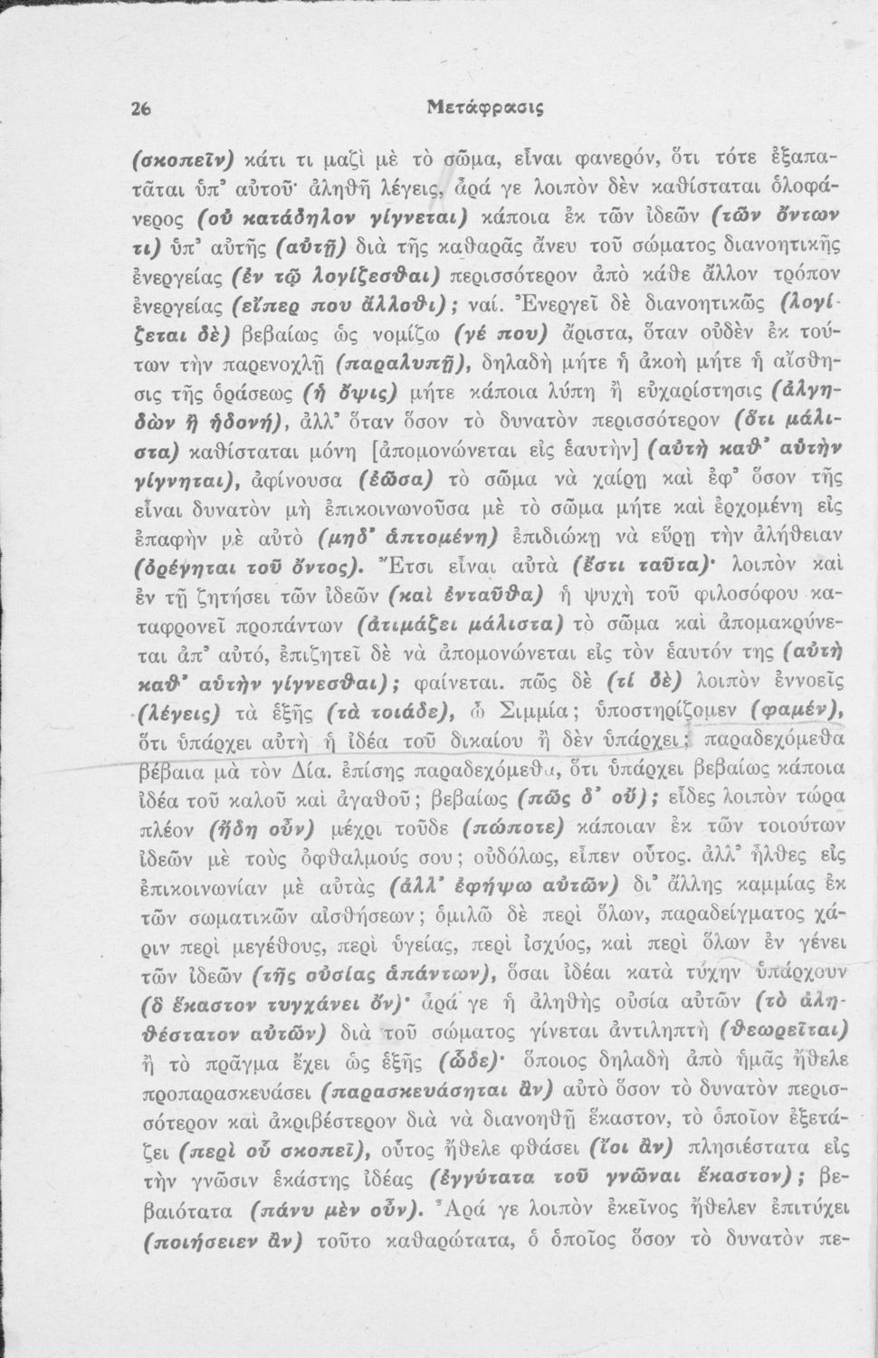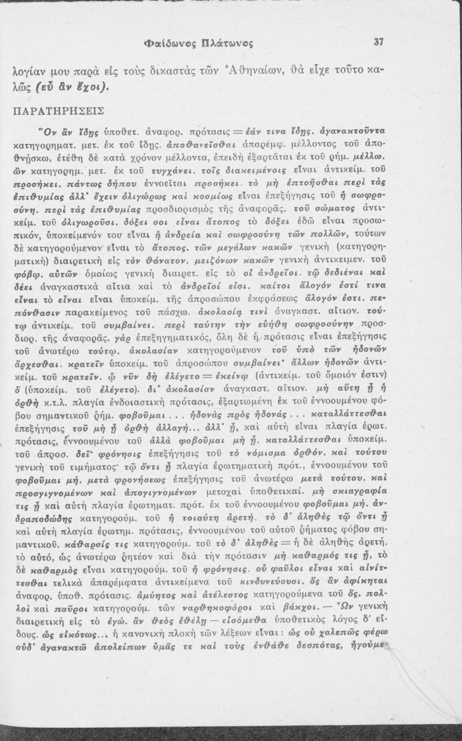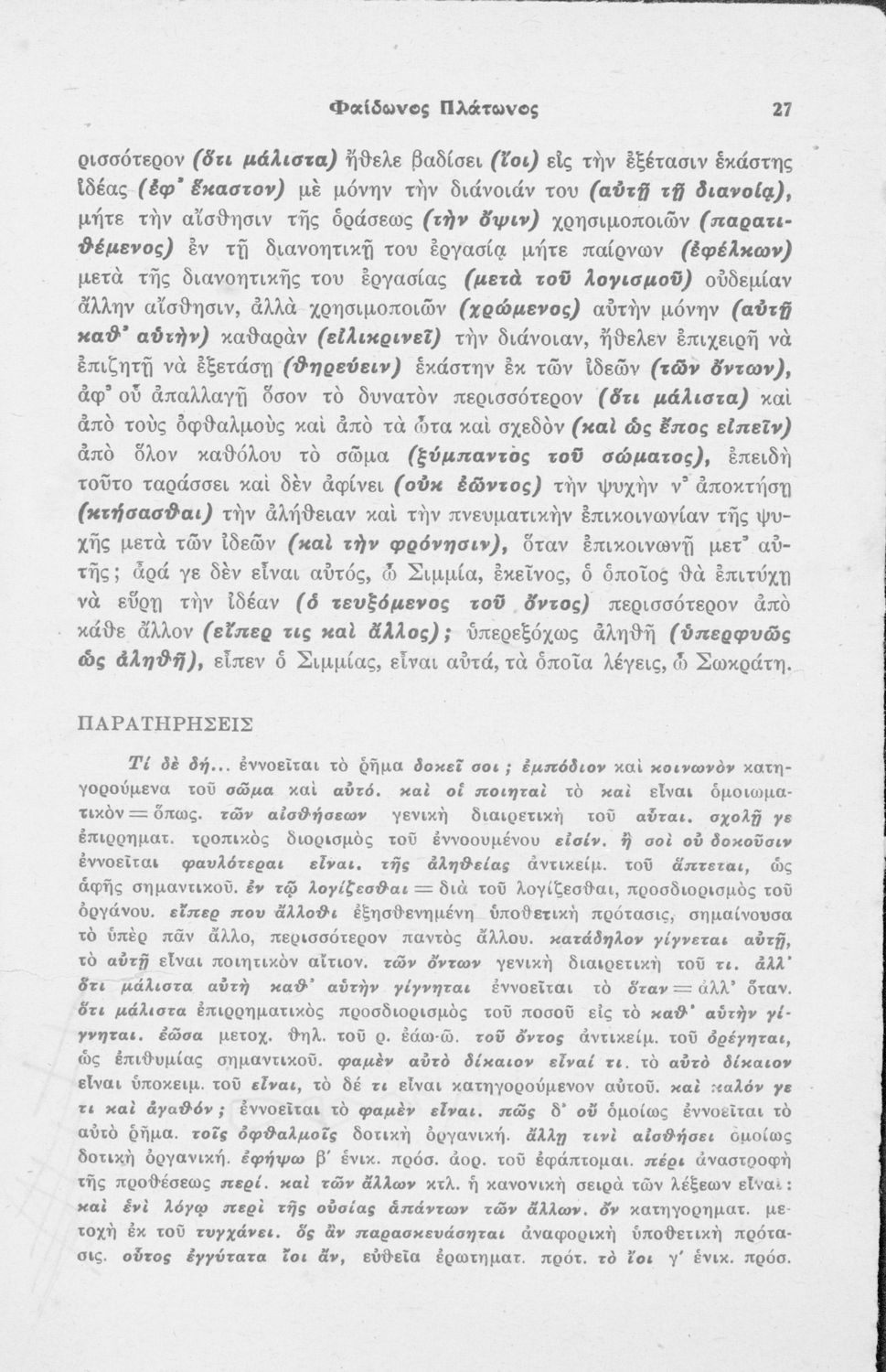 Παρουσίαση περιεχομένου: Μαθητικό βοήθημα του Γυμνασίου για το μάθημα των Αρχαίων Ελληνικών. Περιέχει τη μετάφραση του έργου Φαίδων του Πλάτωνα και ερμηνευτικά, πραγματολογικά σχόλια, καθώς και γραμματικές, συντακτικές παρατηρήσεις του συγγραφέα. Το σύγγραμμα έγινε σύμφωνα με το σχολικό βιβλίο που εγκρίθηκε το 1942.